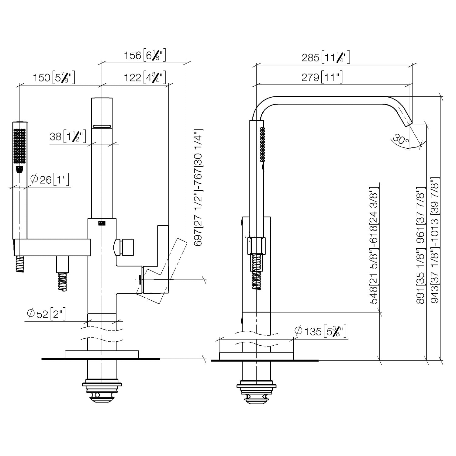 - Höhe bis Luftsprudler: 89,1 - 96,1 cm