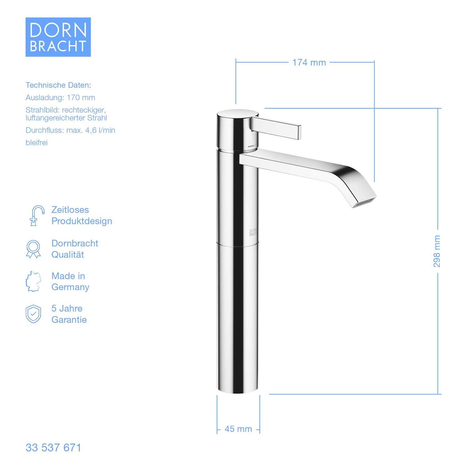 - Höhe bis Luftsprudler 23 cm