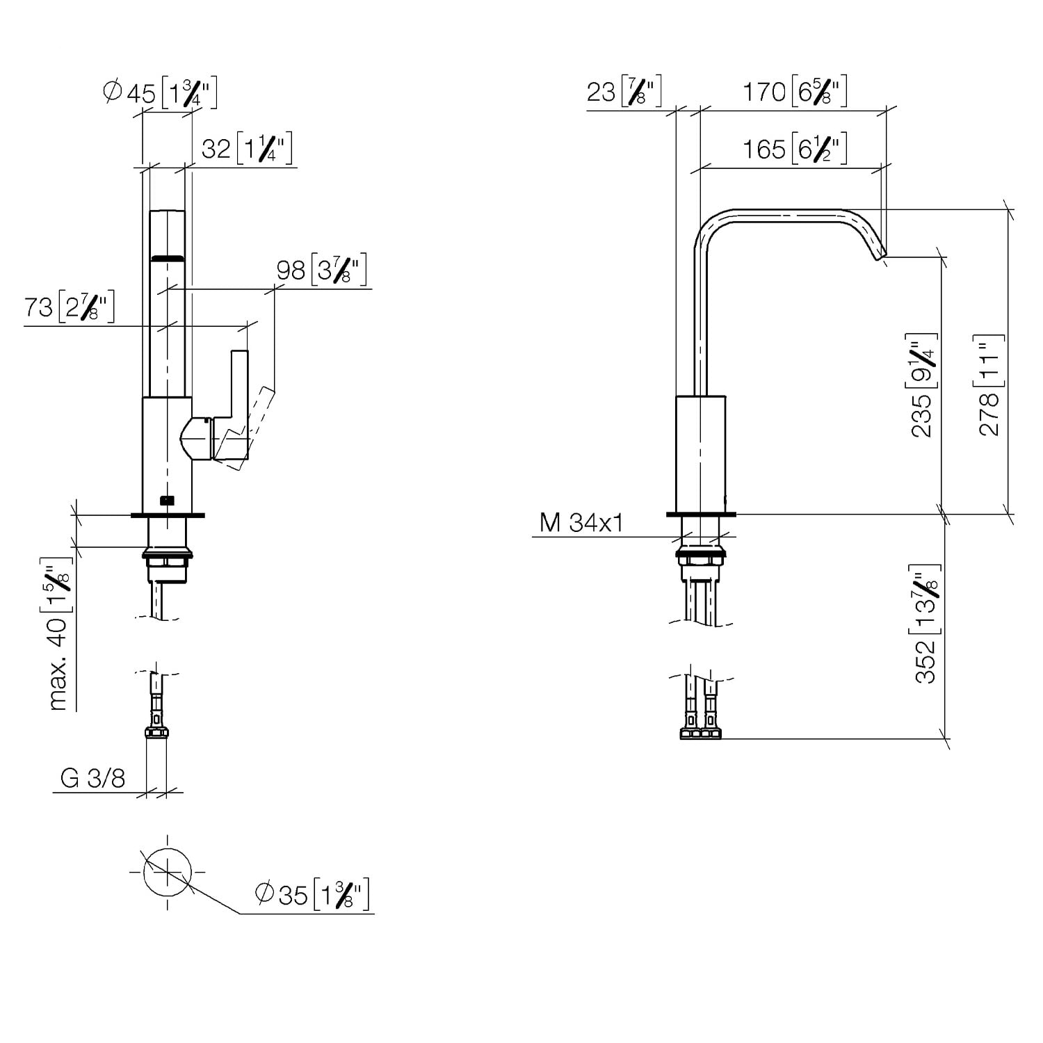 - Armaturenhöhe 27,8 cm