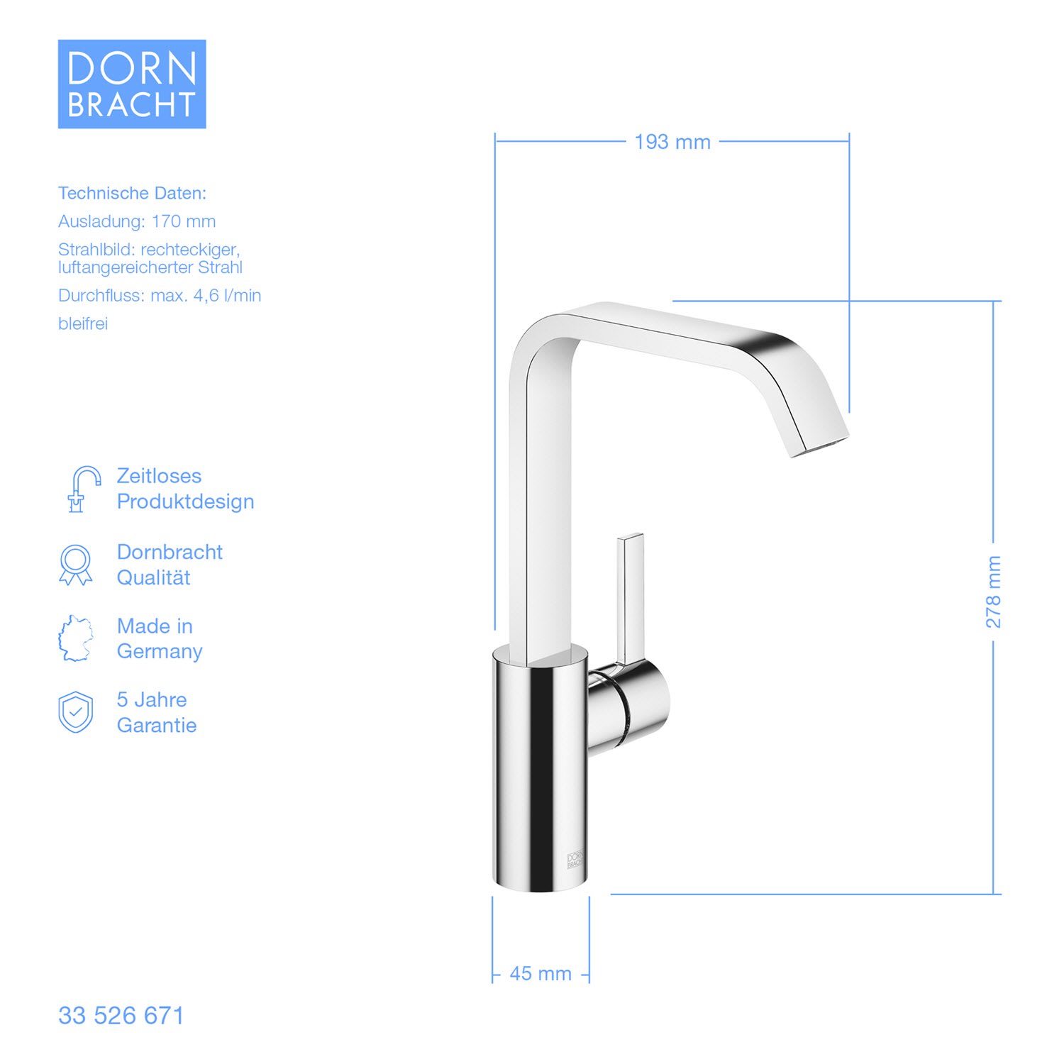 - Höhe bis Luftsprudler 23,5 cm