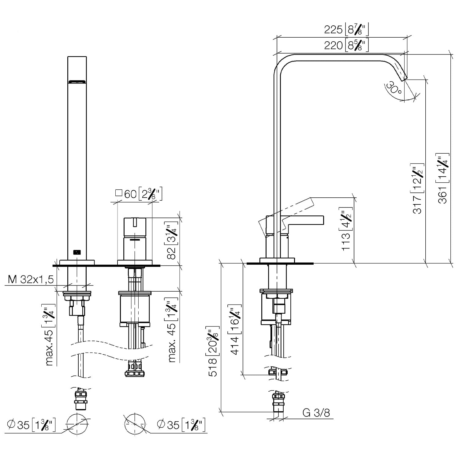 - Höhe bis Luftsprudler 31,7 cm