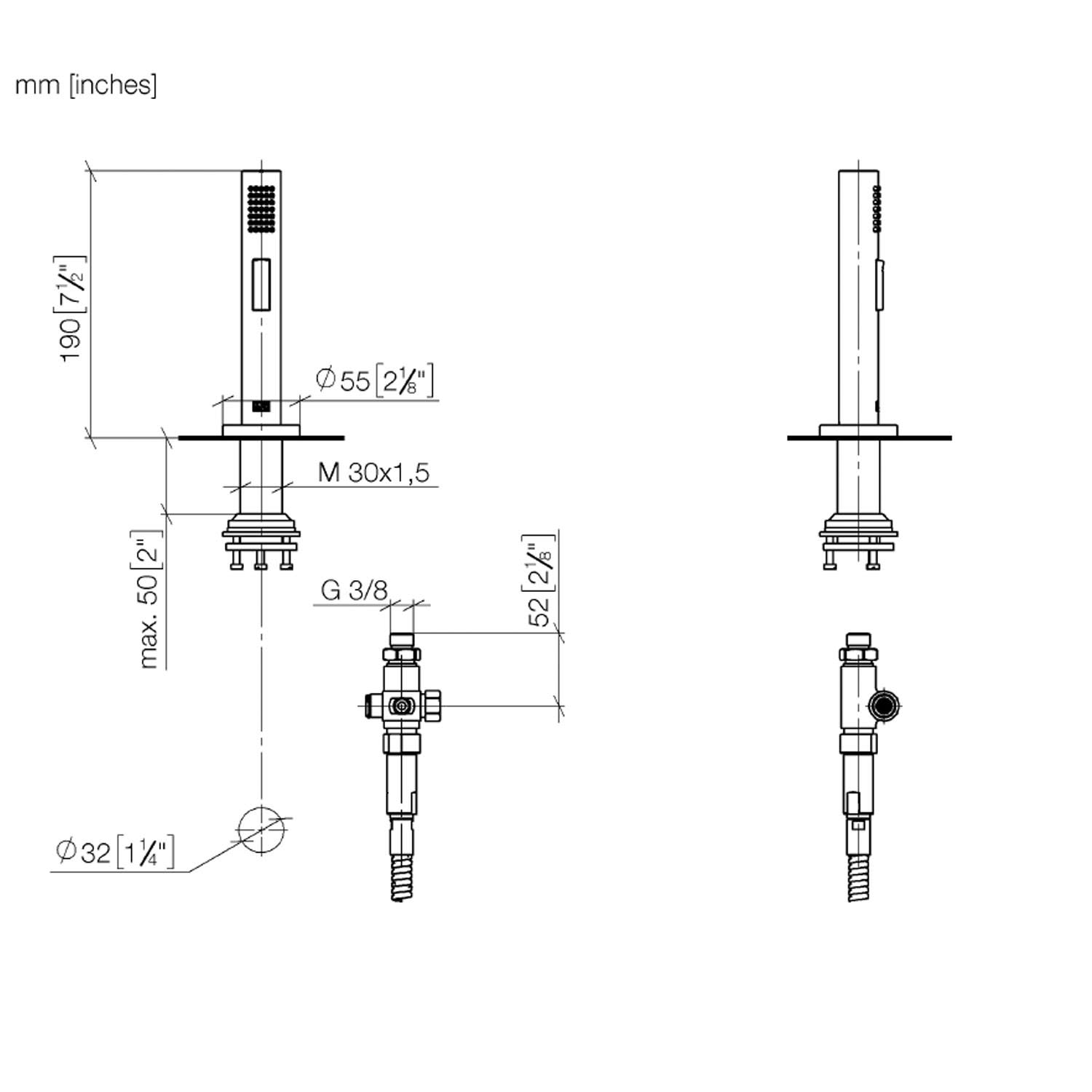 - Bohrungsdurchmesser Spülbrause 3,2 cm