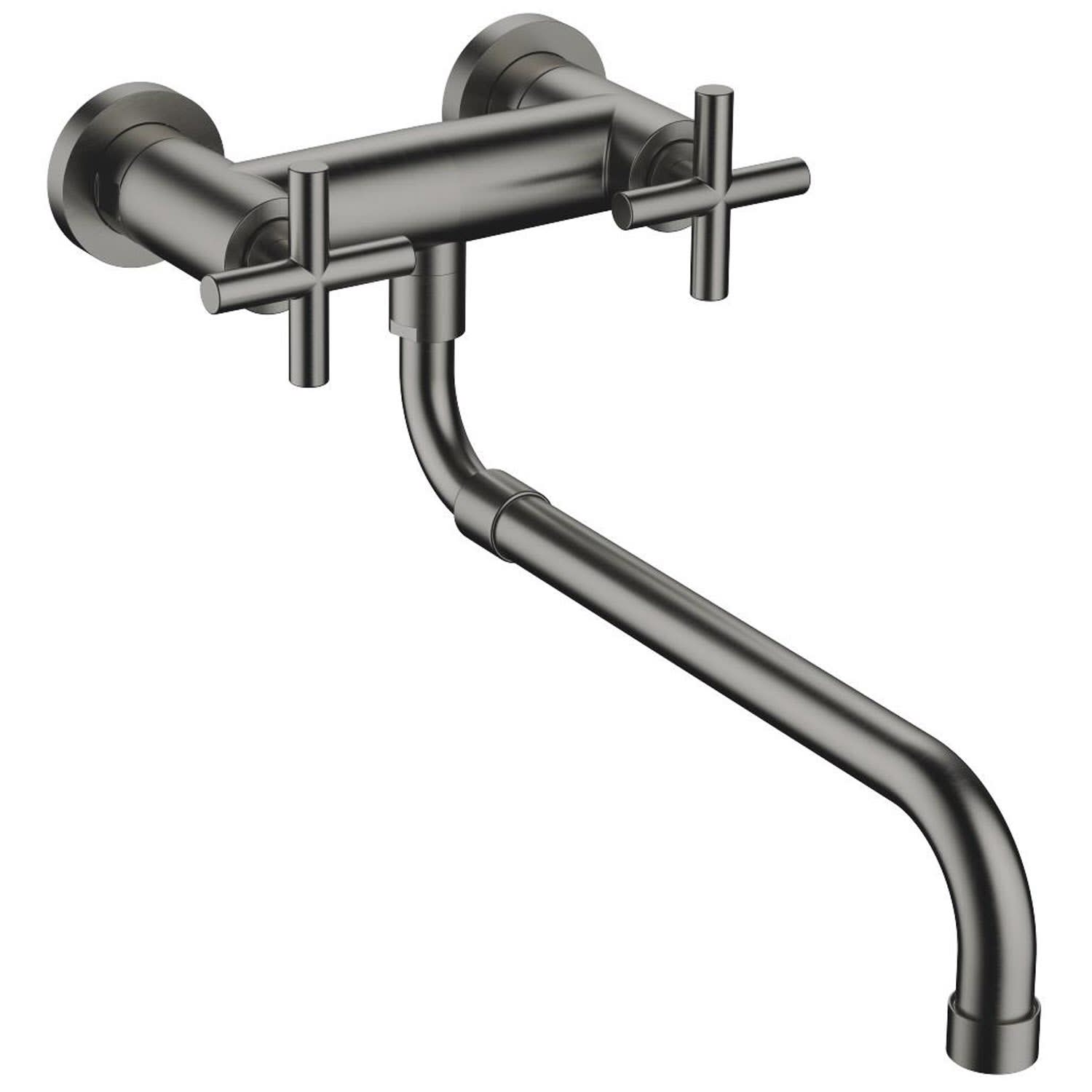 Dornbracht Tara. Spültisch-Wand-Brückenbatterie mit herausziehbarem Auslauf