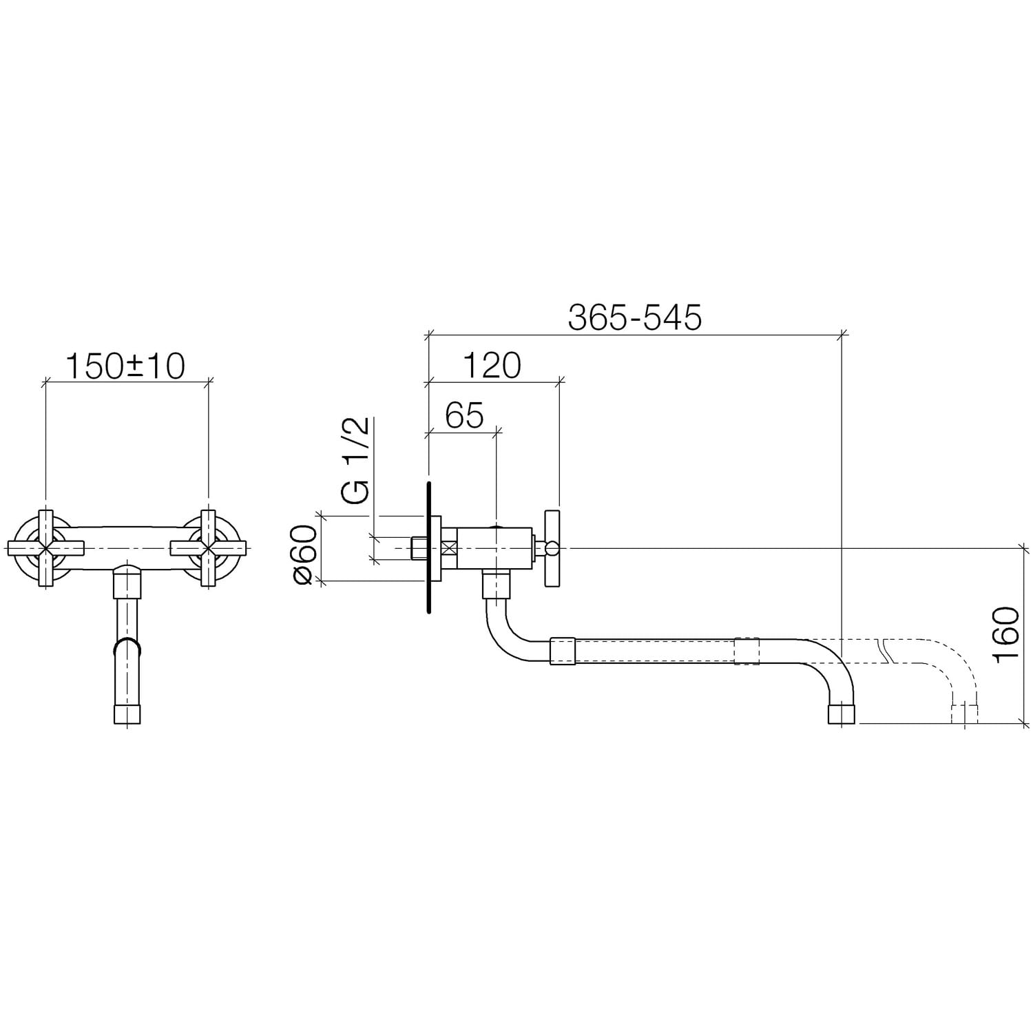 Dornbracht Tara. Spültisch-Wand-Brückenbatterie mit herausziehbarem Auslauf