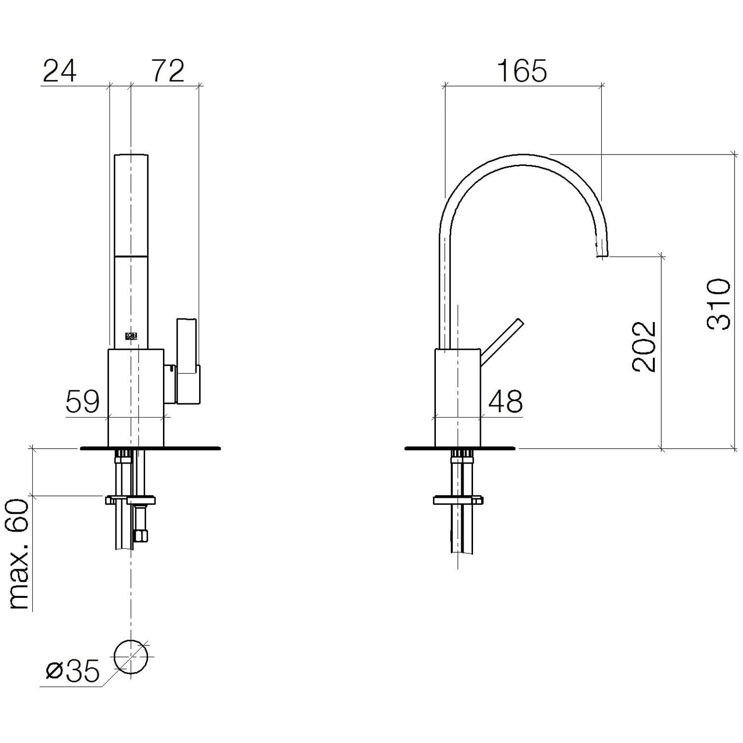 - Höhe bis Luftsprudler 20,2 cm