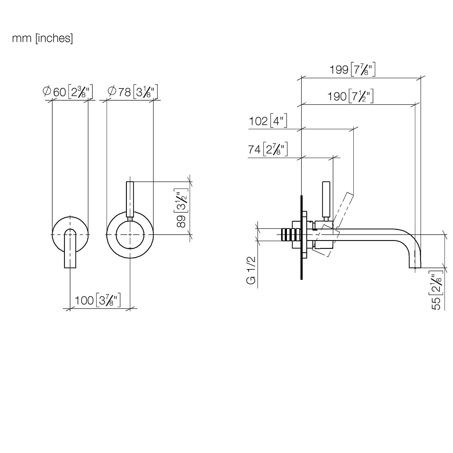 Dornbracht Meta Waschtisch-Wand-Einhandbatterie mit Einzelrosetten
