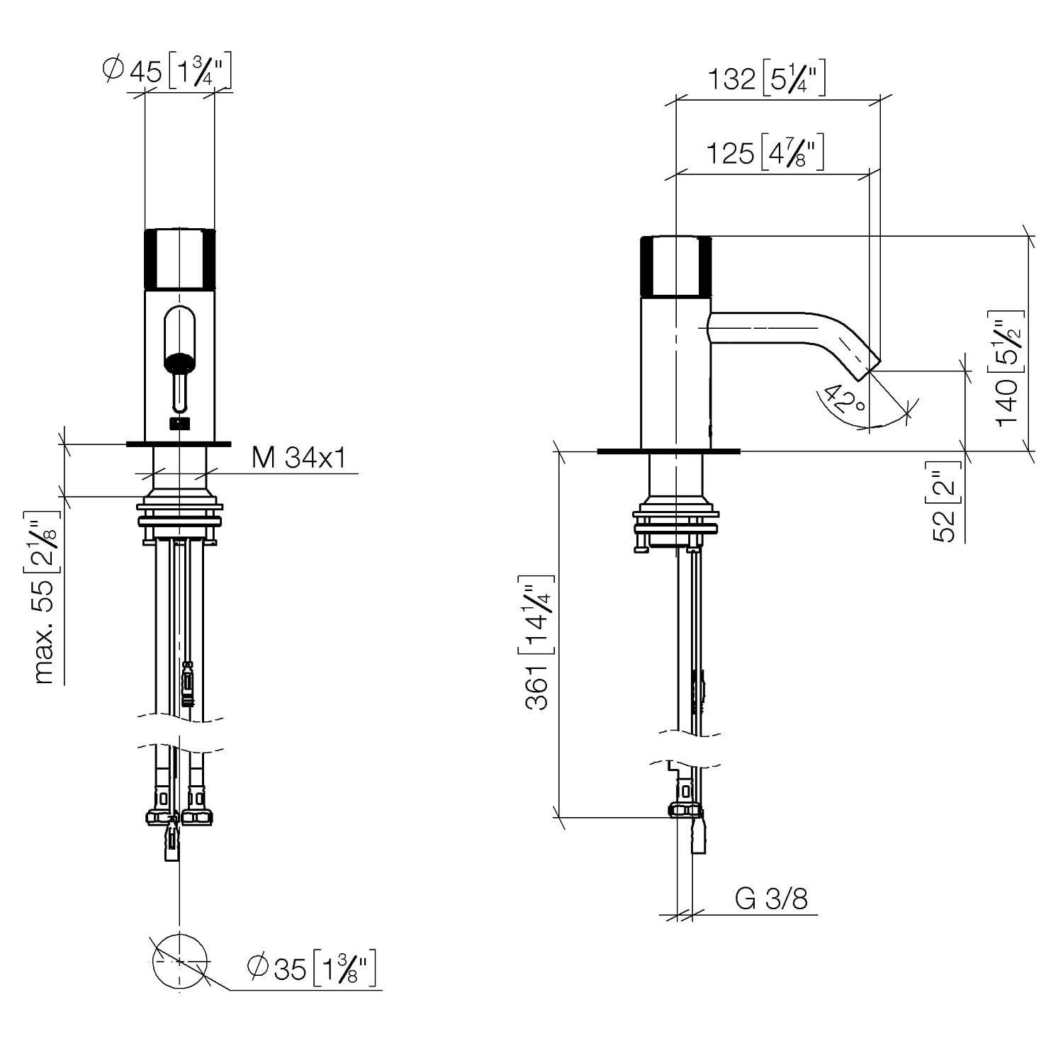 Dornbracht Meta Waschtischarmatur mit Infrarot-Sensorik, Batteriebetrieb