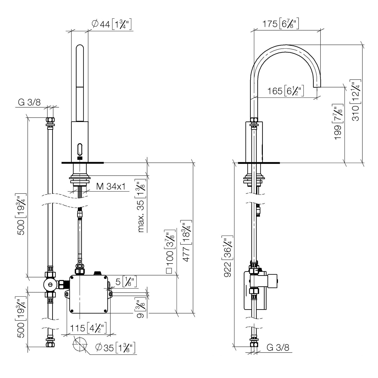 Dornbracht Meta Waschtischarmatur mit Infrarot-Sensorik, Batterie- und Netzbetrieb