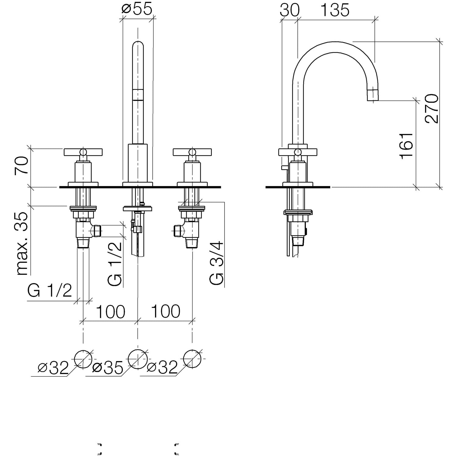 Dornbracht TARA Waschtisch-Dreilochbatterie