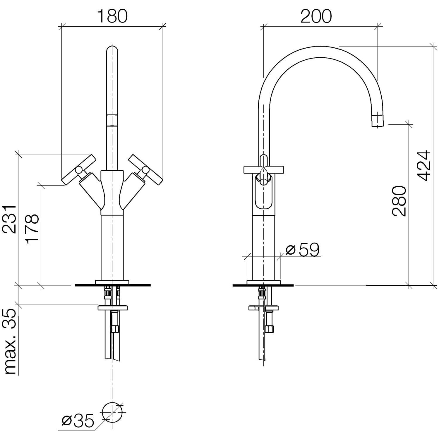 - Armaturenhöhe 42,5 cm