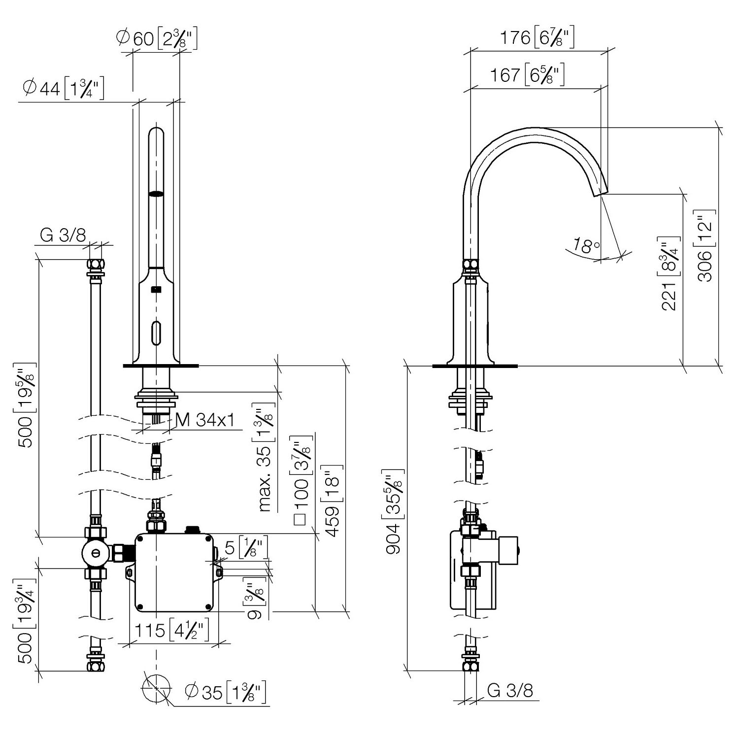Dornbracht VAIA Waschtischarmatur mit Infrarot-Sensorik, Batterie- und Netzbetrieb
