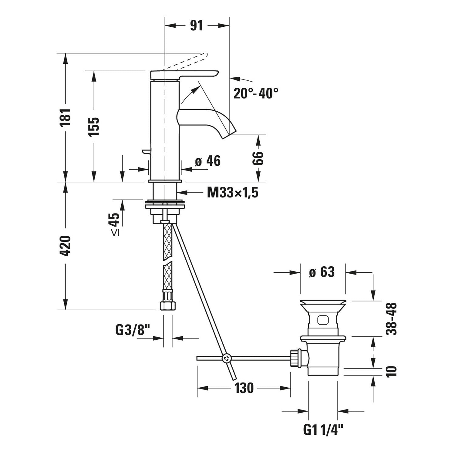Duravit C.1 Einhebel-Waschtischmischer S FreshStart und MinusFlow, mit Zugstangen-Ablaufgarnitur