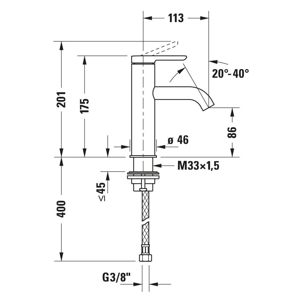 Duravit C.1 Einhebel-Waschtischmischer M FreshStart und MinusFlow, ohne Zugstangen-Ablaufgarnitur