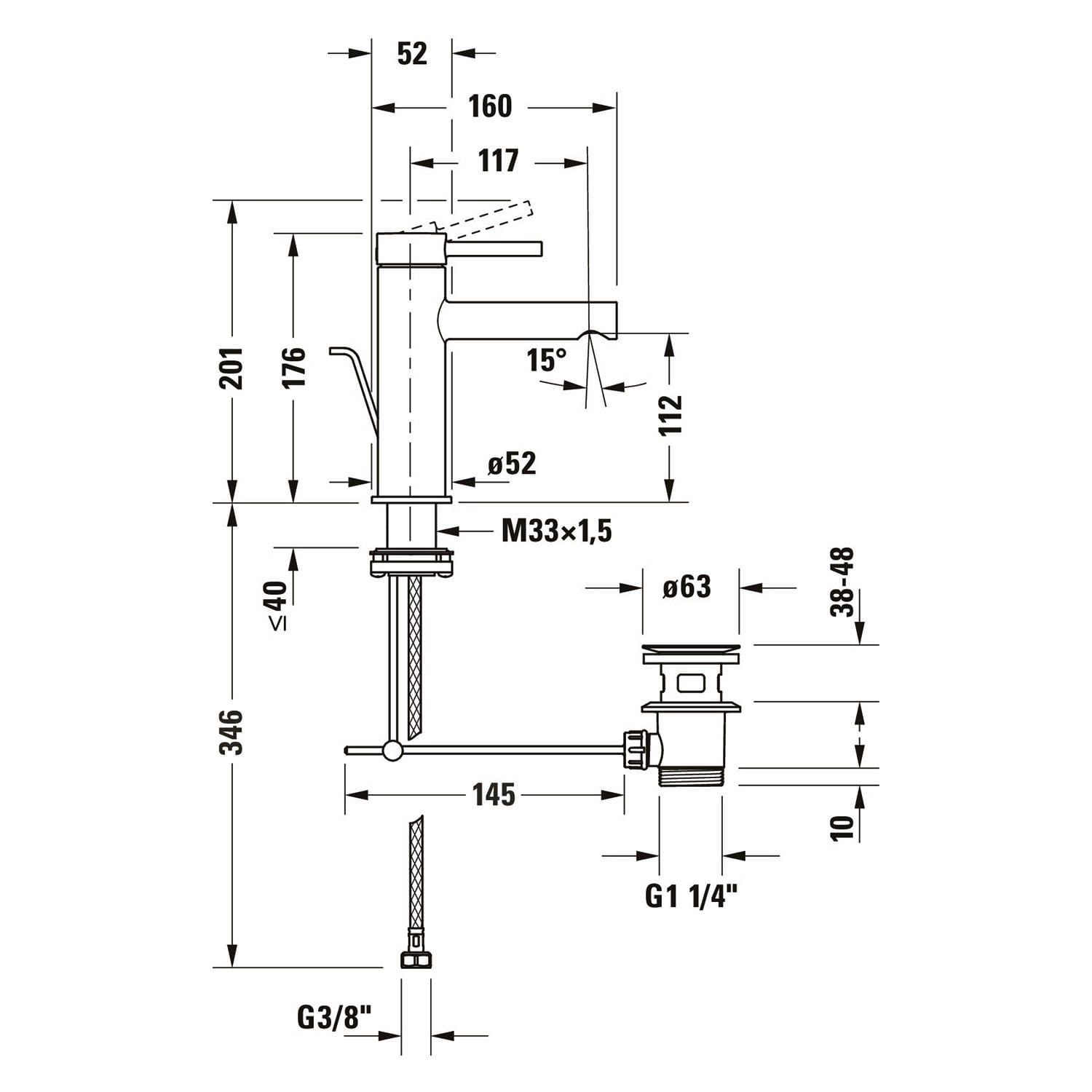 - Maß der Anschlussschläuche: 3/8 Zoll
