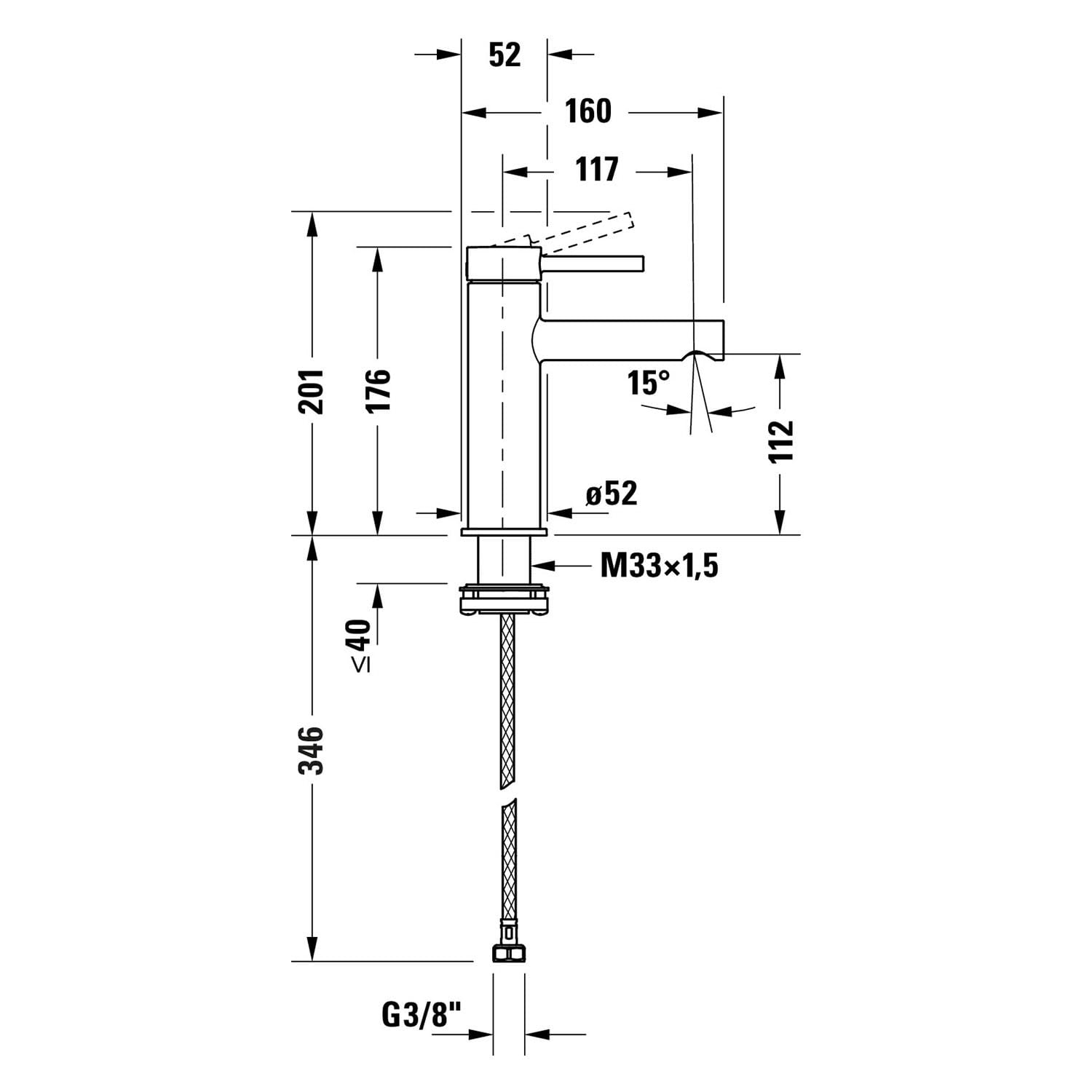 - Maß der Anschlussschläuche: 3/8 Zoll