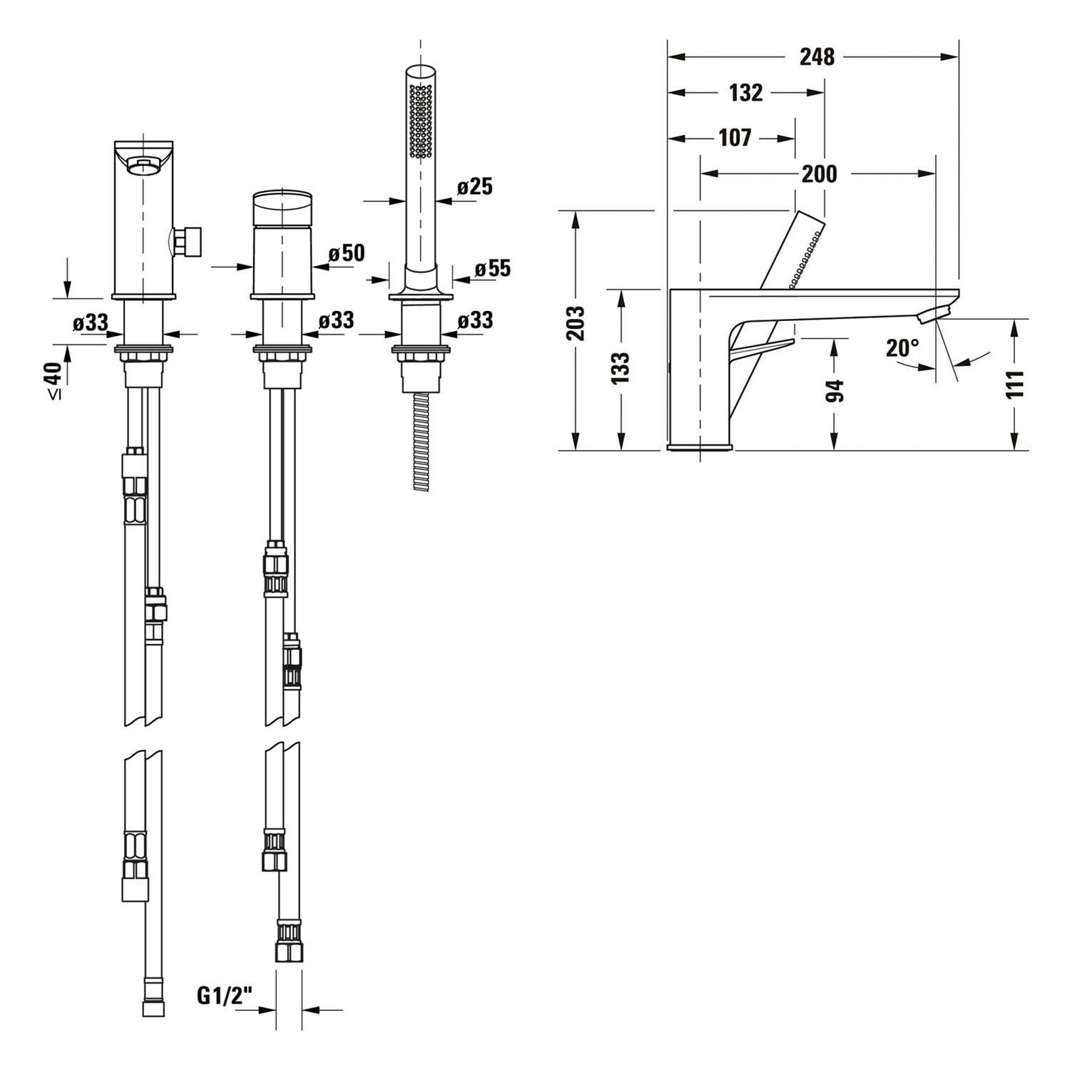 - einfache Installation: Armatur wird über flexible Anschlussschläuche mit vorhandenen Wasseranschlüssen verbunden