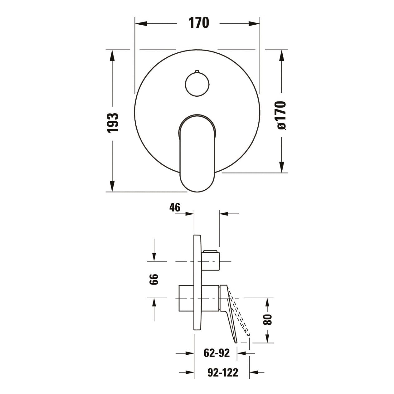 Ausladung: 6,2 - 9,2 Rosette: Ø 17 cm