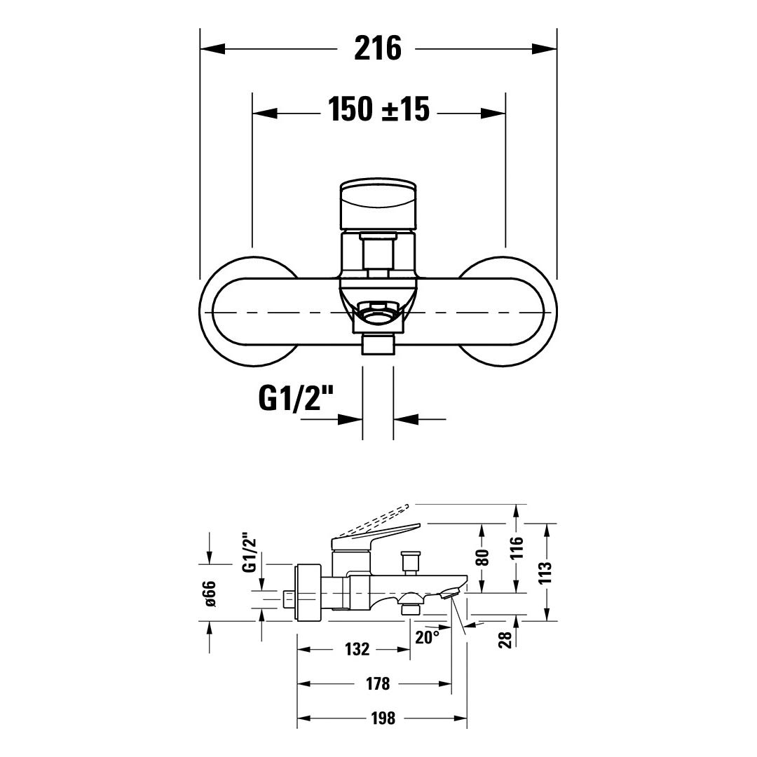 Duravit Wave Einhebel-Wannenmischer Aufputz