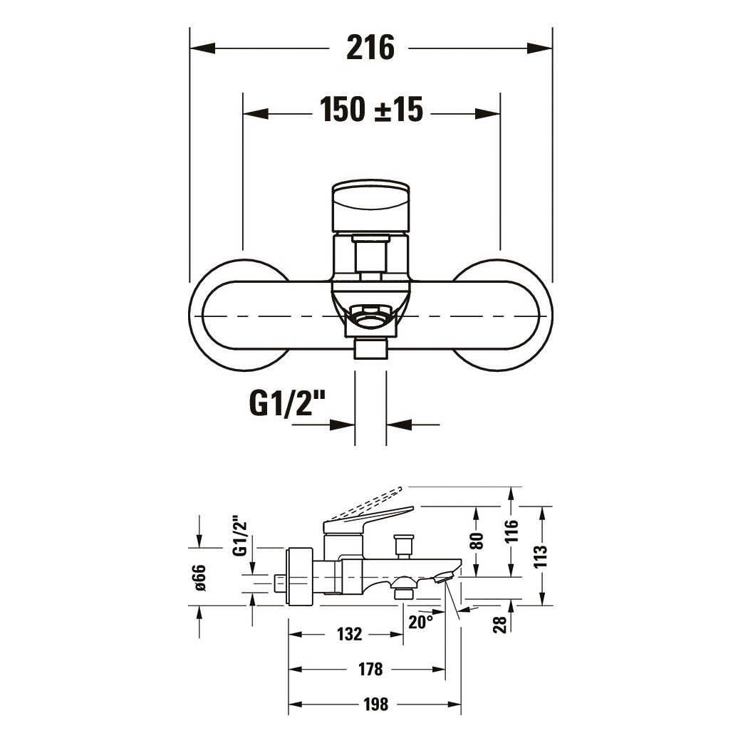 Duravit Wave Einhebel-Wannenmischer Aufputz