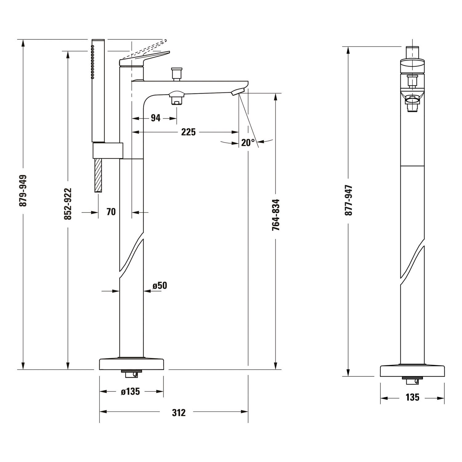 Duravit Wave Einhebel-Wannenmischer bodenstehend