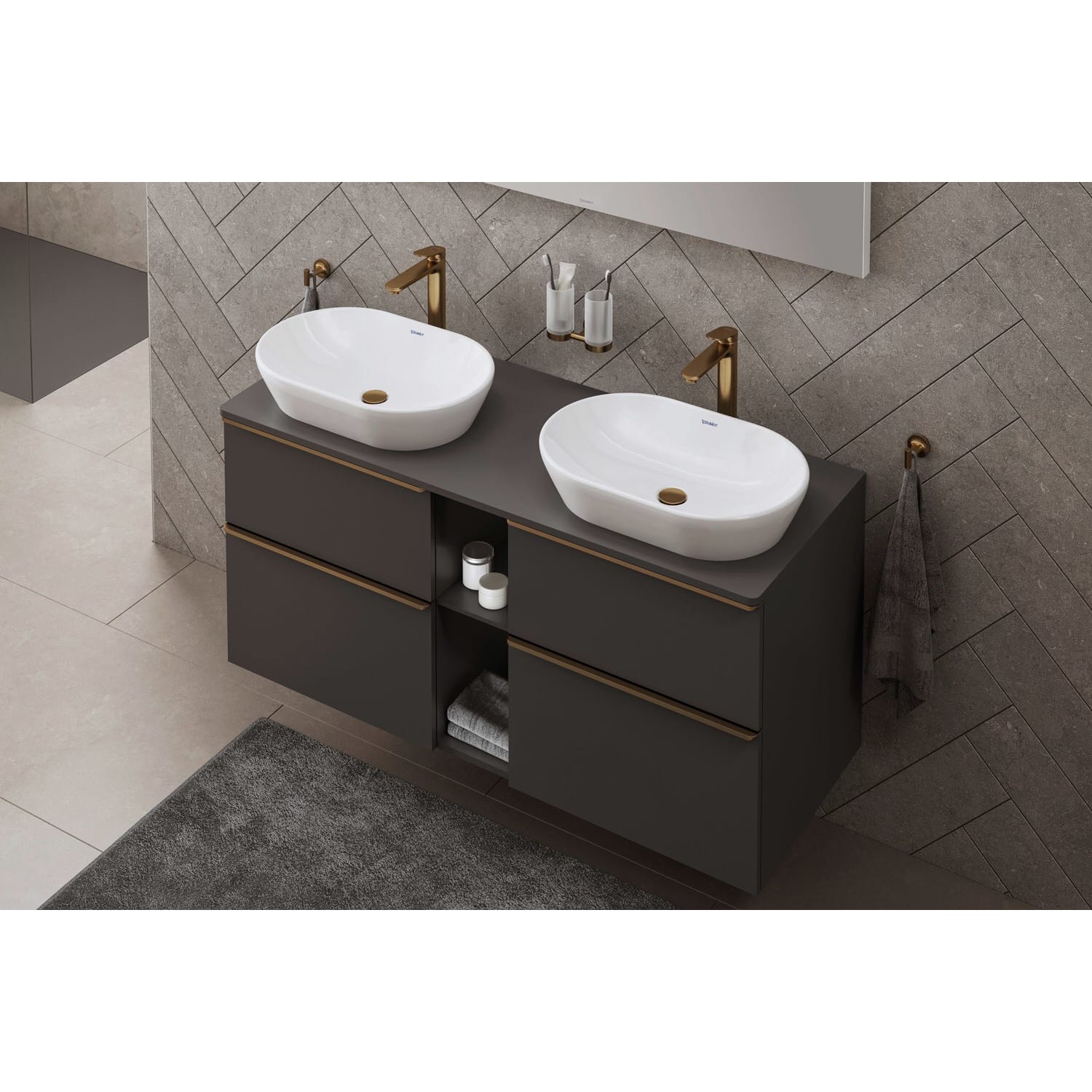 Duravit D-Neo Konsolenwaschtischunterbau für 2 Waschtische 140 x 66,4 cm, 4 Auszüge, Griff bronze gebürstet