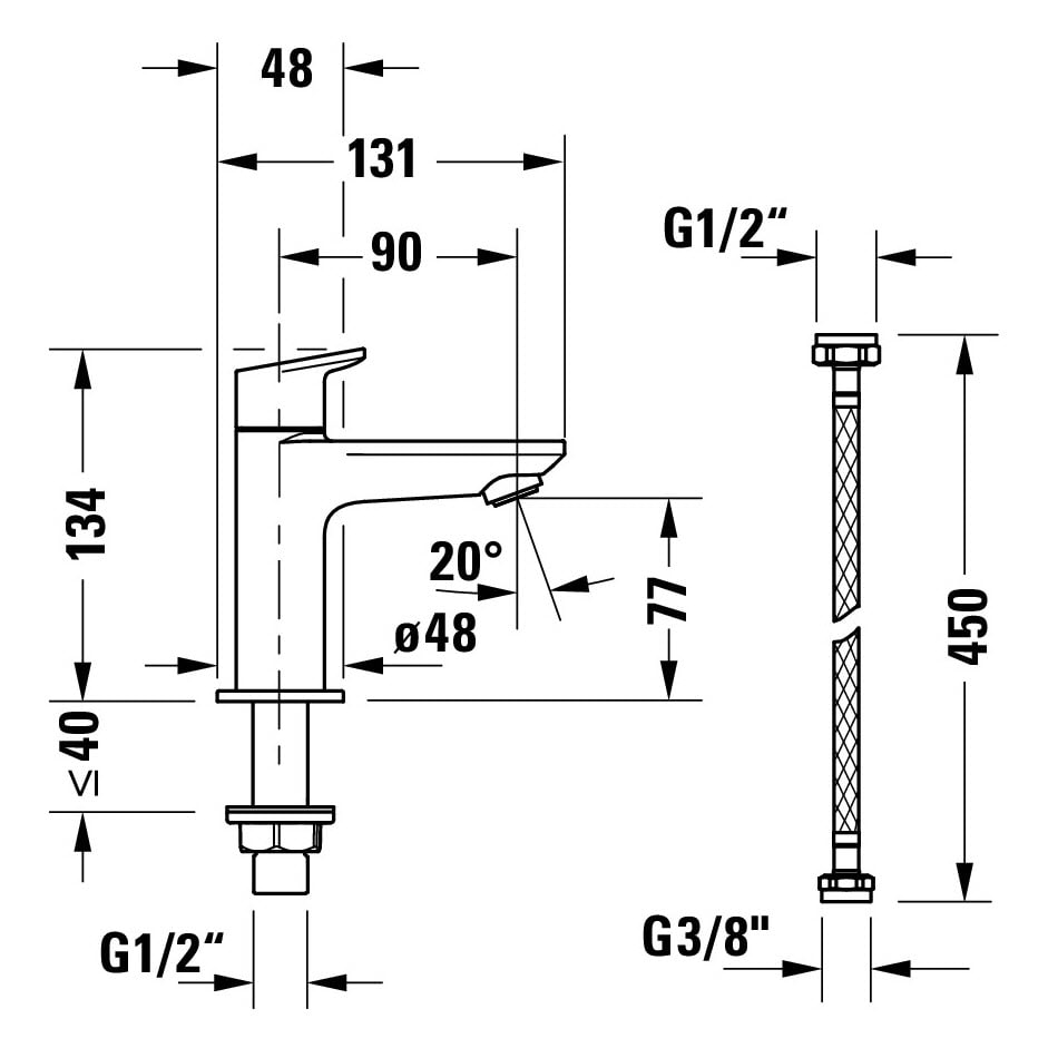 - einfache Installation: Armatur wird über flexible Anschlussschläuche mit vorhandenen Wasseranschlüssen verbunden