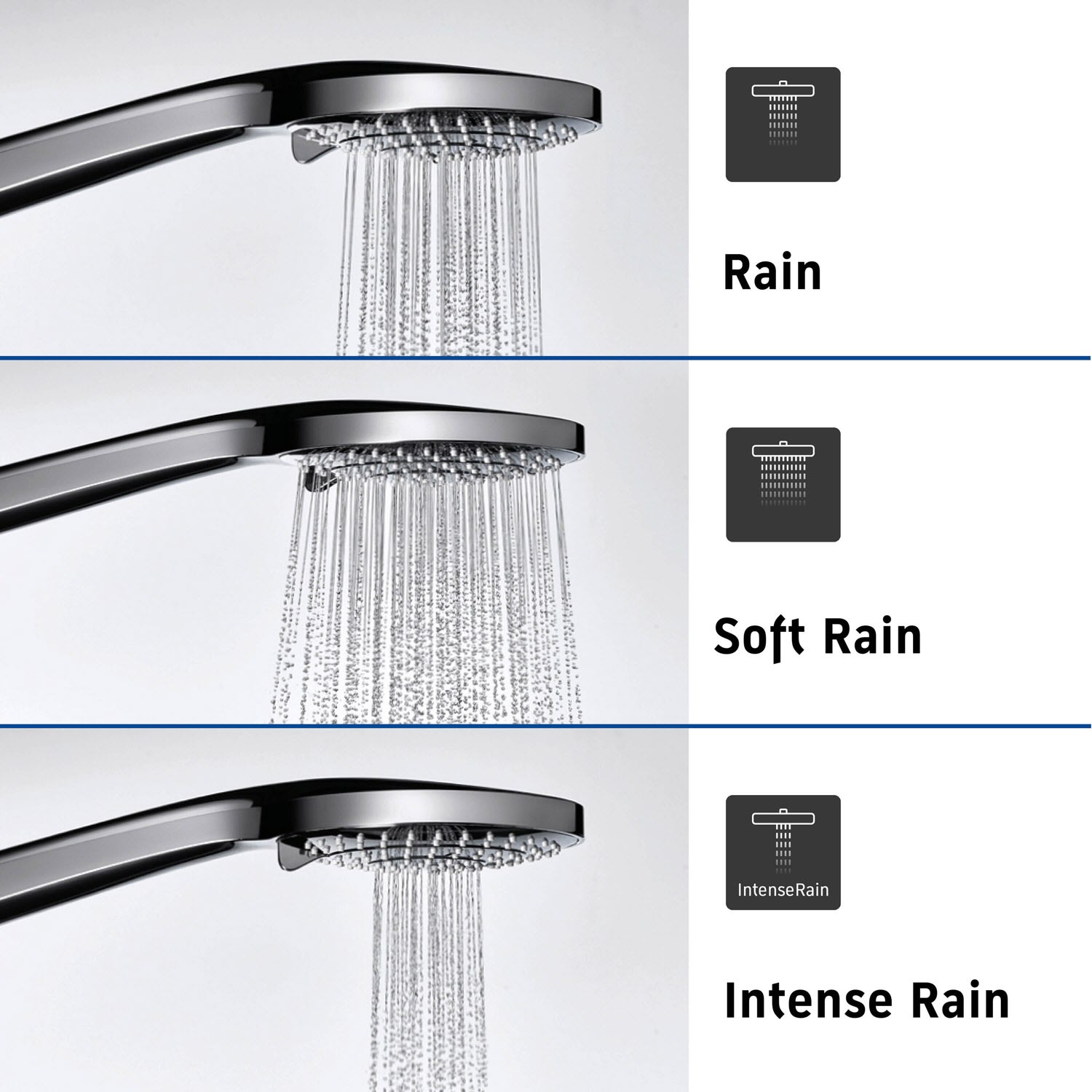 - mit 3 Strahlarten: Rain, Intense Rain und Soft Rain