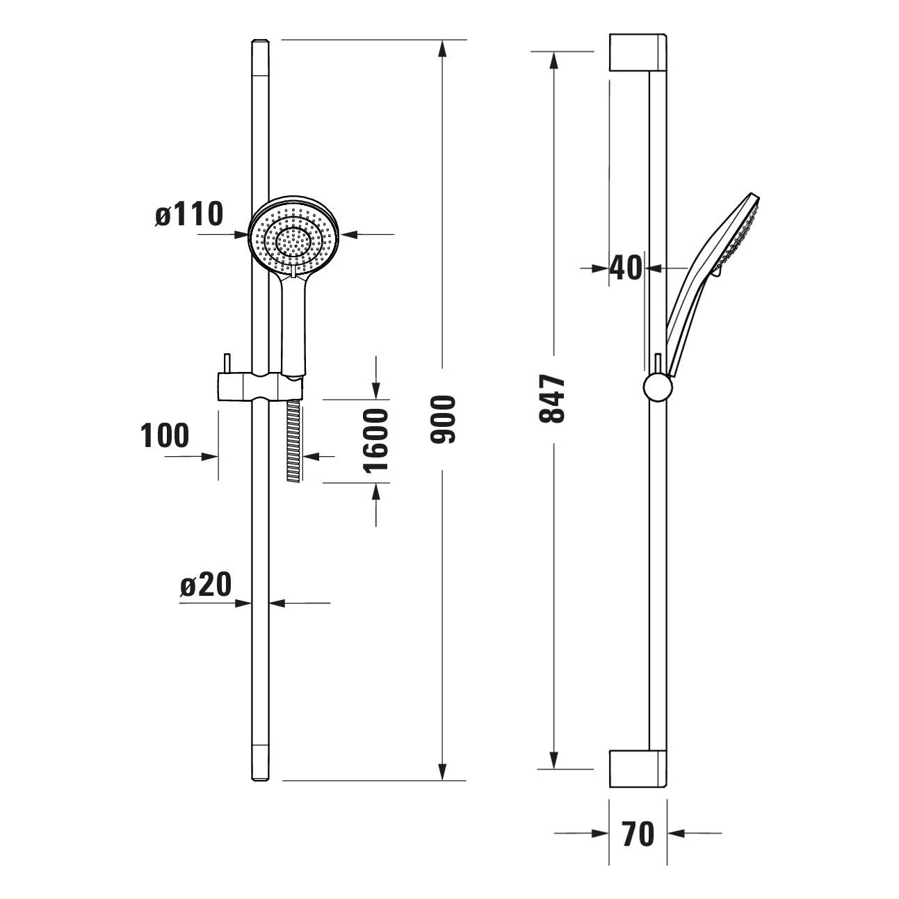 - Brausestange Länge: 90 cm