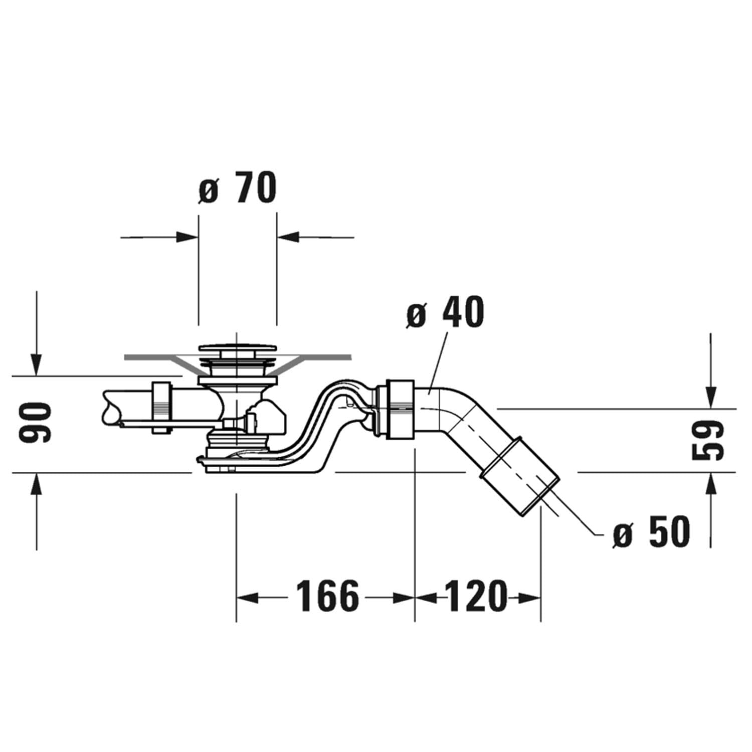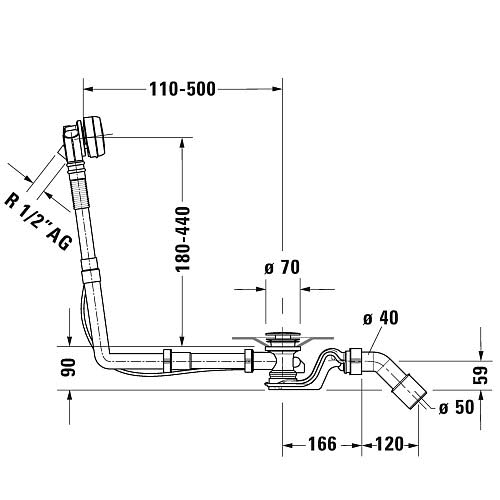 Duravit Ab- und Überlaufgarnitur Quadroval, Bowdenzug 65 cm, mit Wanneneinlauf