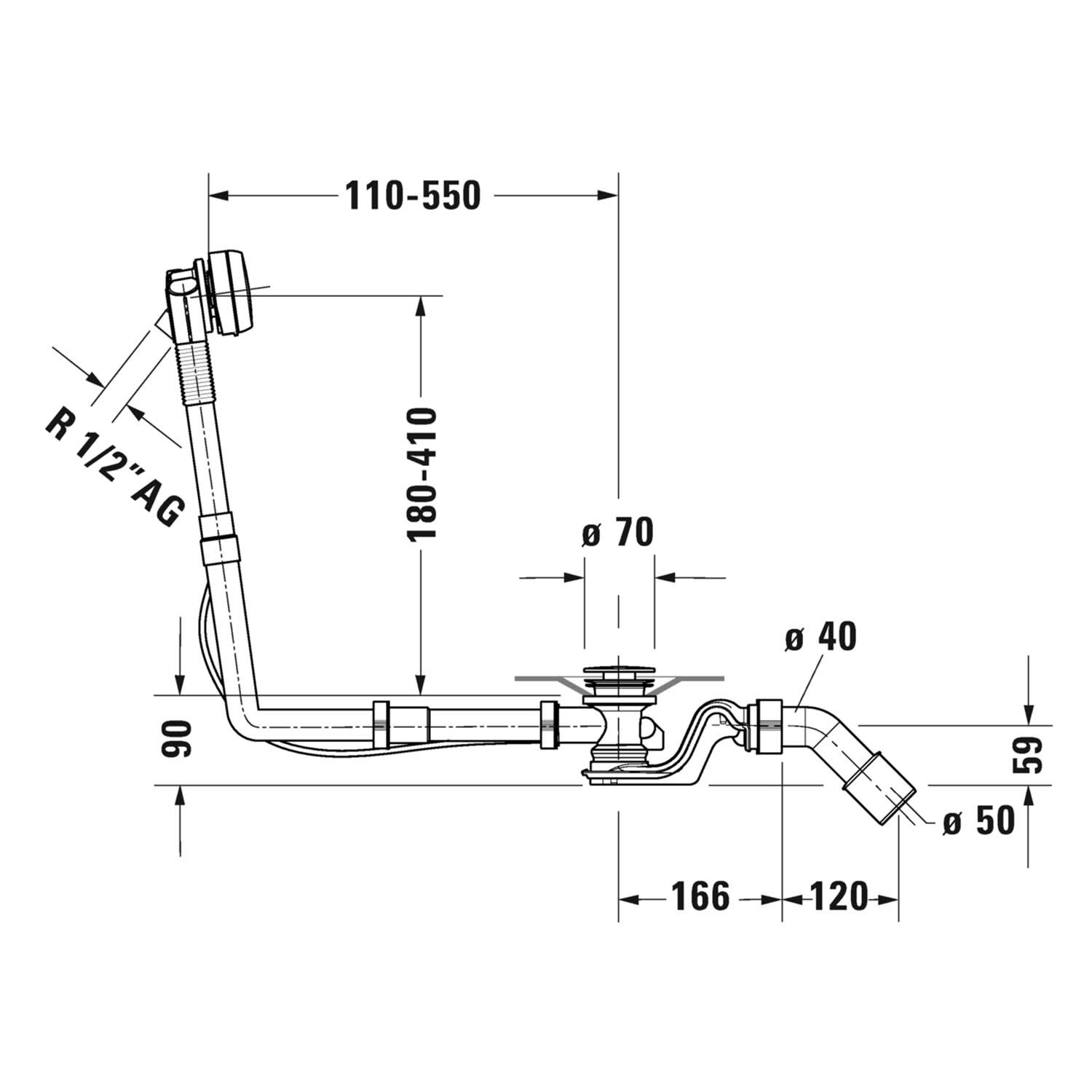 Duravit Ab- und Überlaufgarnitur Quadroval, mit Wanneneinlauf