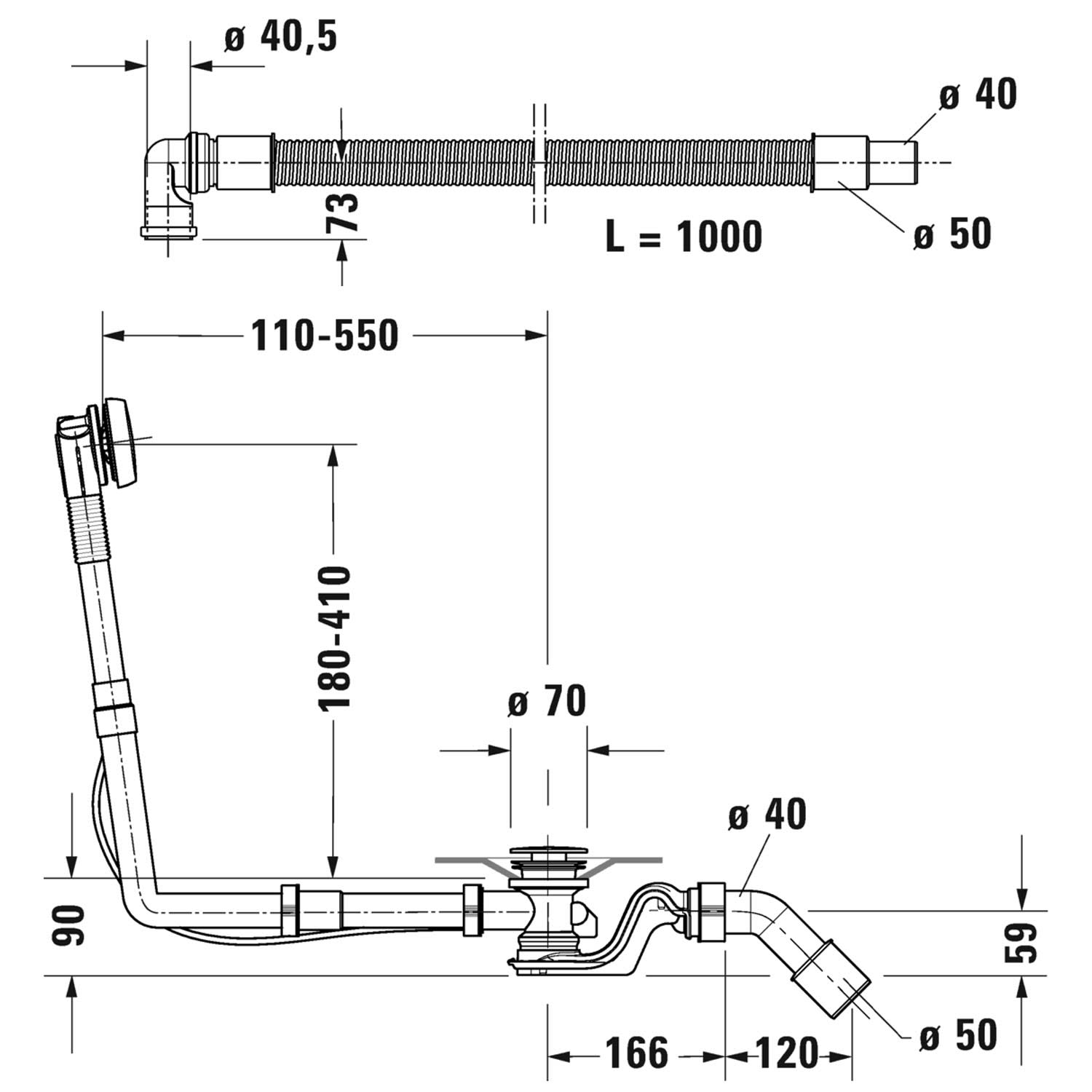 - mit flexiblem Ablaufschlauch