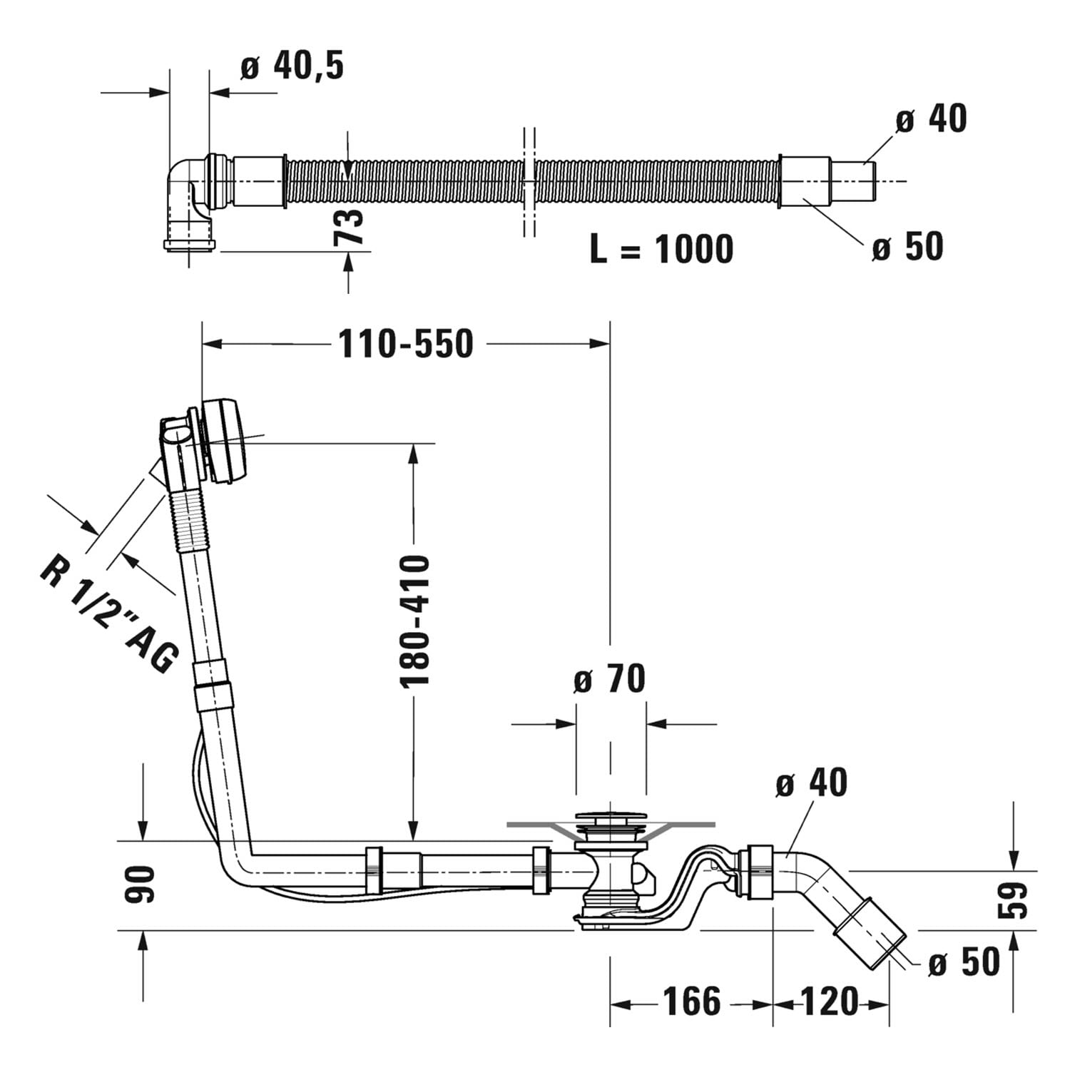 - mit flexiblem Ablaufschlauch