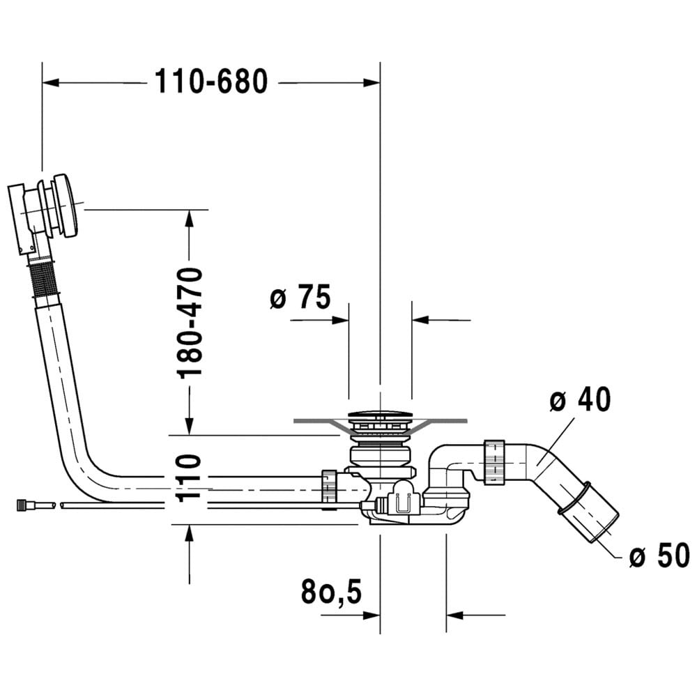 Duravit Ab- und Überlaufgarnitur Quadroval mit Bodenzulauf