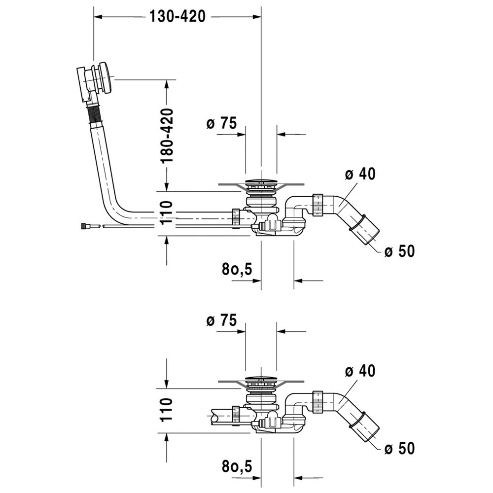 Duravit Ab- und Überlaufgarnitur Quadroval mit Bodenzulauf