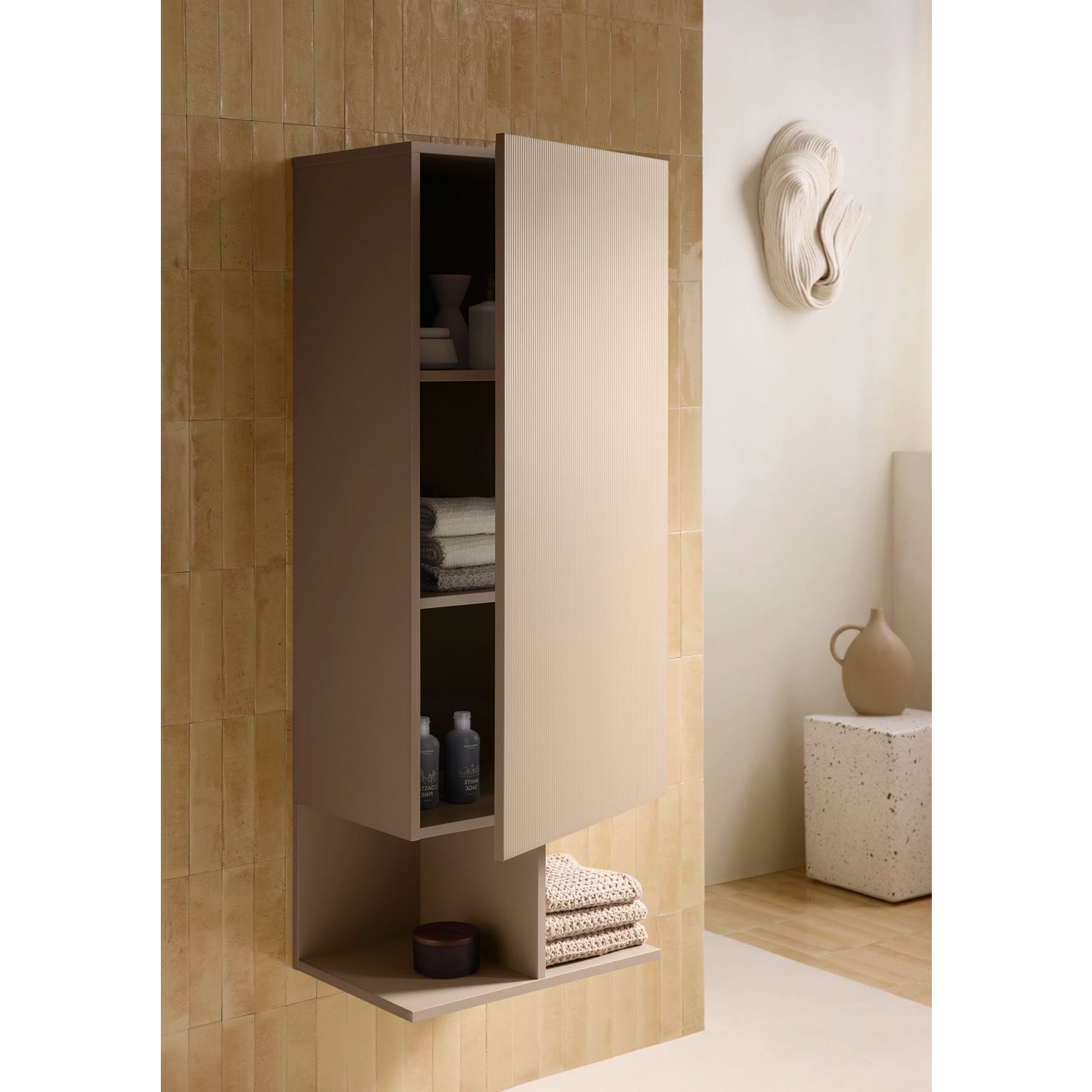 Sanipa 3way-Struktur Hochschrank 40 cm, 2 Türen Anschlag rechts, mit Push to open