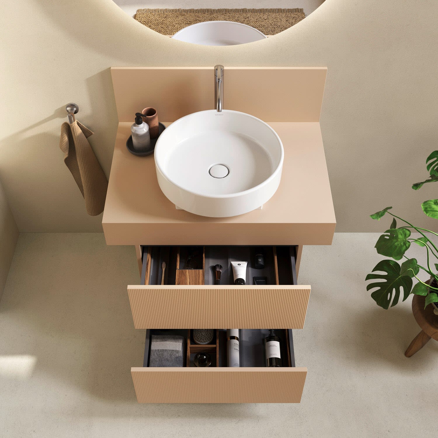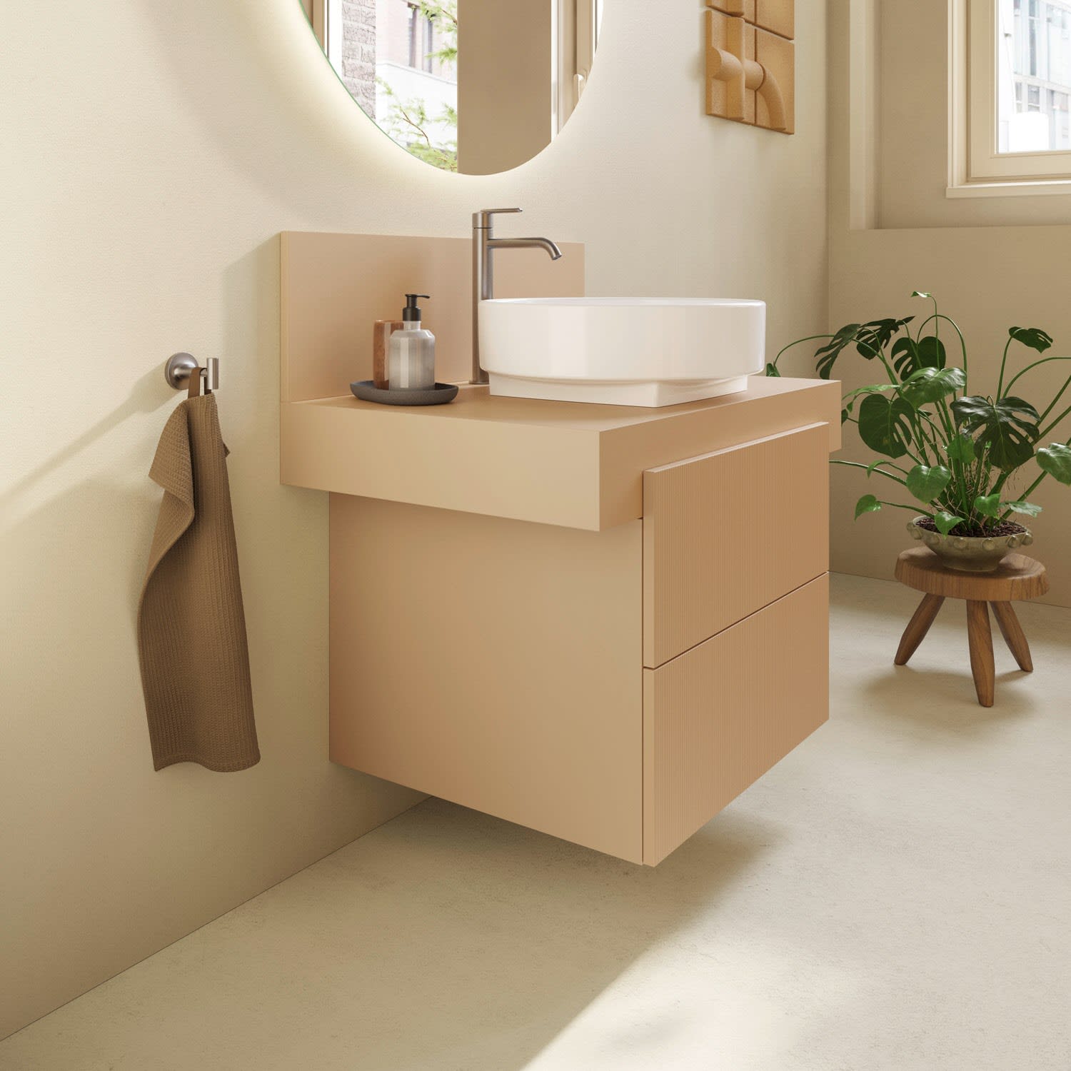 Ein passender Aufsatzwaschtisch ist nicht im Lieferumfang enthalten und muss separat bestellt werden. Bitte bei der Bestellung die Artikelnummer der gewünschten Keramik angeben. Bei einer Fremdkeramik können gegebenenfalls zusätzliche Kosten für den passenden Ausschnitt entstehen.