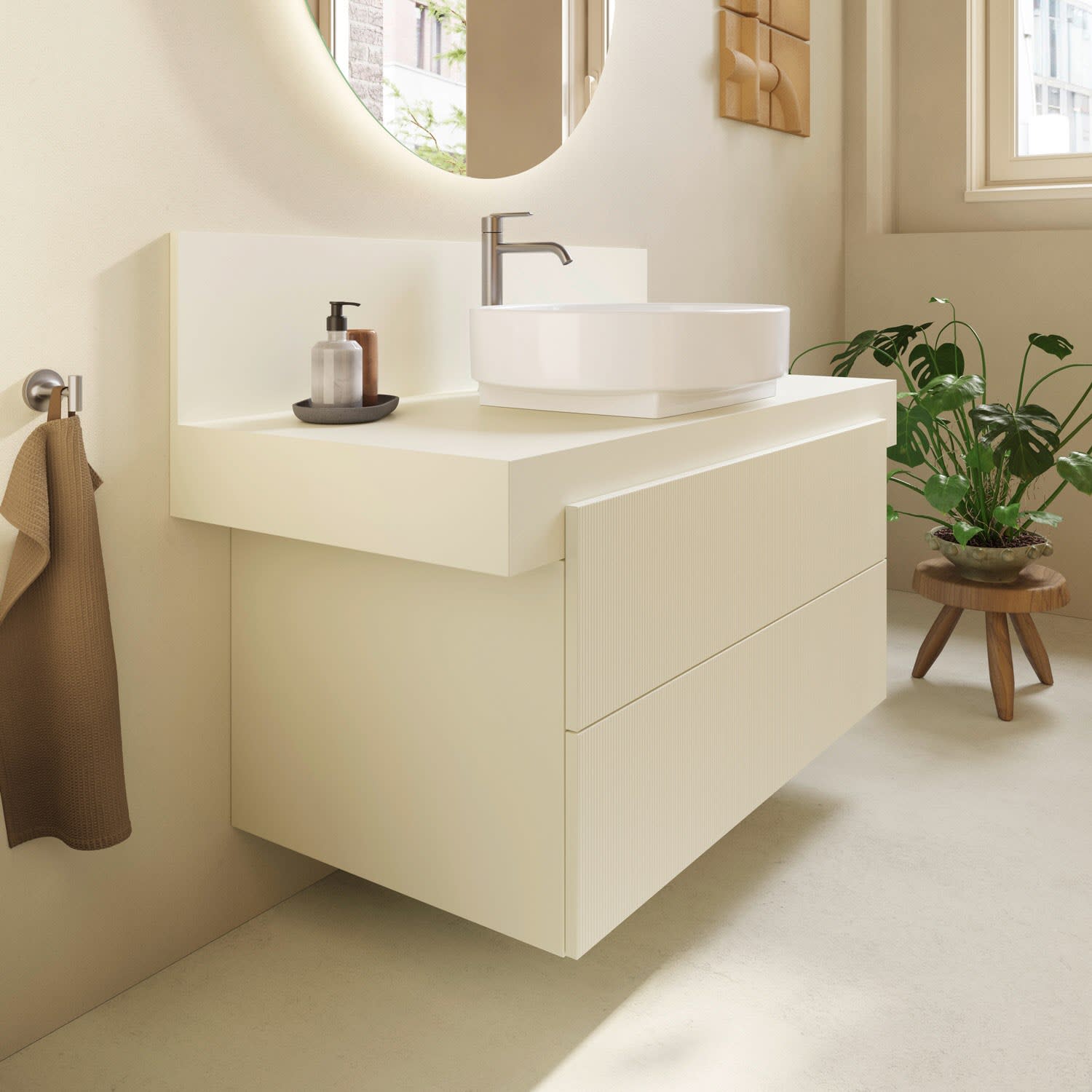 Ein passender Aufsatzwaschtisch ist nicht im Lieferumfang enthalten und muss separat bestellt werden. Bitte bei der Bestellung die Artikelnummer der gewünschten Keramik angeben. Bei einer Fremdkeramik können gegebenenfalls zusätzliche Kosten für den passenden Ausschnitt entstehen.