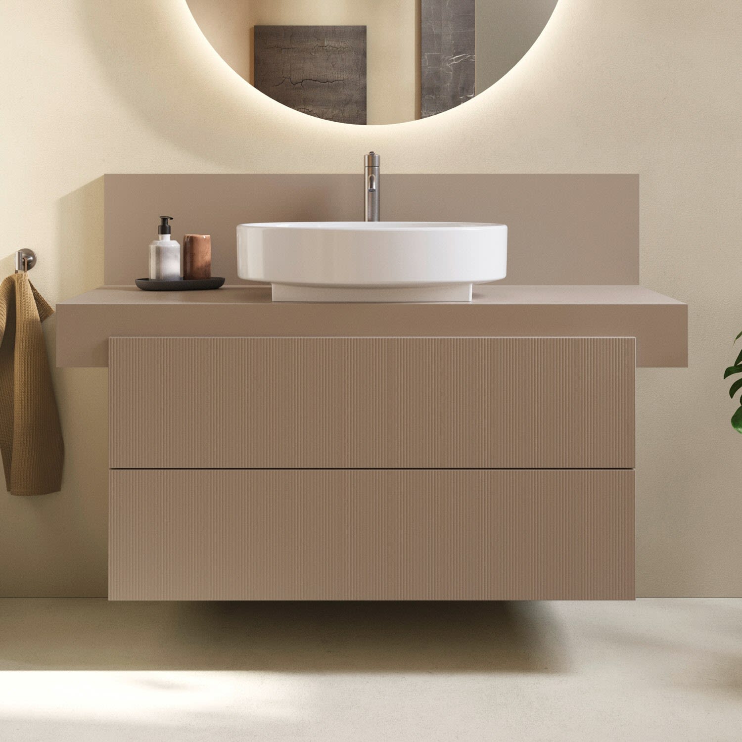 Ein passender Aufsatzwaschtisch ist nicht im Lieferumfang enthalten und muss separat bestellt werden. Bitte bei der Bestellung die Artikelnummer der gewünschten Keramik angeben. Bei einer Fremdkeramik können gegebenenfalls zusätzliche Kosten für den passenden Ausschnitt entstehen.