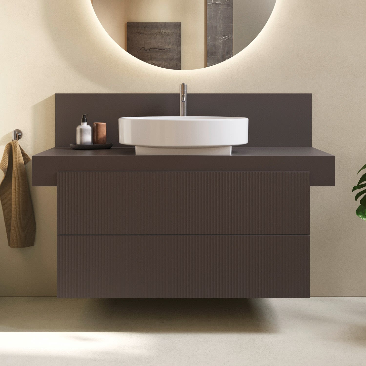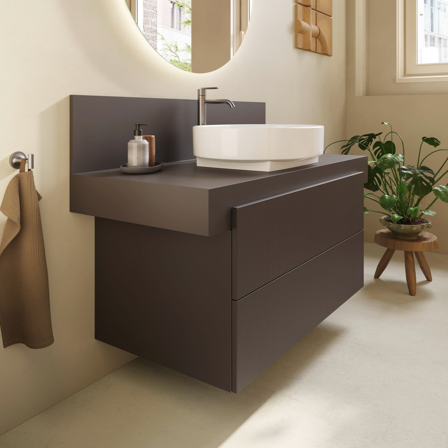 Ein passender Aufsatzwaschtisch ist nicht im Lieferumfang enthalten und muss separat bestellt werden. Bitte bei der Bestellung die Artikelnummer der gewünschten Keramik angeben. Bei einer Fremdkeramik können gegebenenfalls zusätzliche Kosten für den passenden Ausschnitt entstehen.