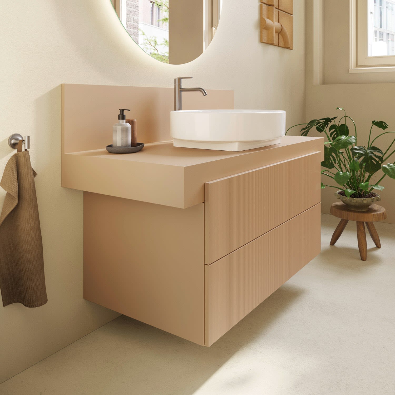 Ein passender Aufsatzwaschtisch ist nicht im Lieferumfang enthalten und muss separat bestellt werden. Bitte bei der Bestellung die Artikelnummer der gewünschten Keramik angeben. Bei einer Fremdkeramik können gegebenenfalls zusätzliche Kosten für den passenden Ausschnitt entstehen.