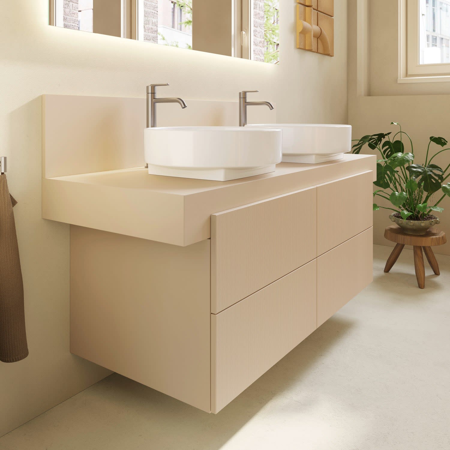 Sanipa 3way-Struktur Unterschrank 130 cm, 4 Auszüge mit Villeroy & Boch Subway 3.0 Doppel-Waschtisch