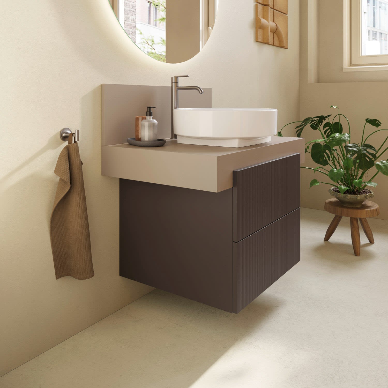 Ein passender Aufsatzwaschtisch ist nicht im Lieferumfang enthalten und muss separat bestellt werden. Bitte bei der Bestellung die Artikelnummer der gewünschten Keramik angeben. Bei einer Fremdkeramik können gegebenenfalls zusätzliche Kosten für den passenden Ausschnitt entstehen.