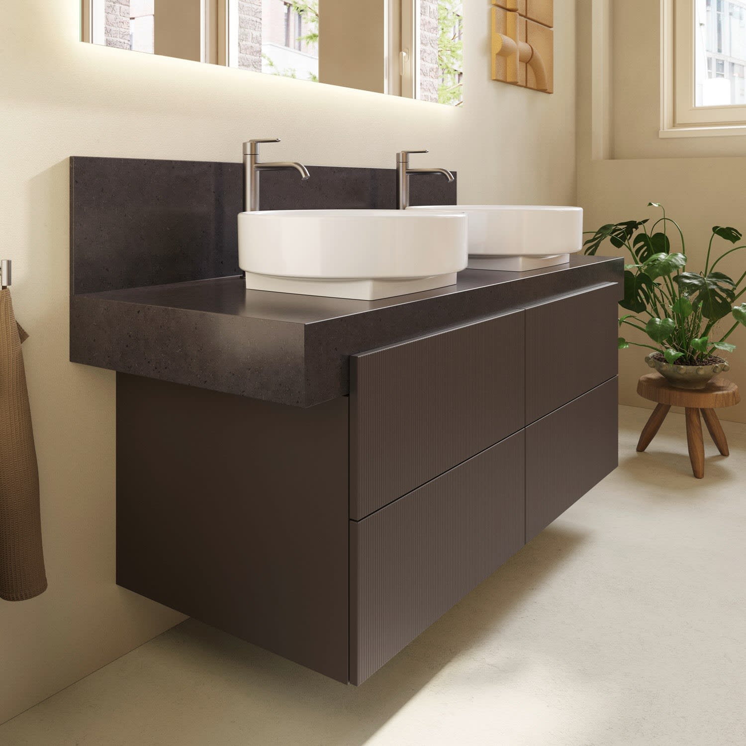 Die passenden Aufsatzwaschtische sind nicht im Lieferumfang enthalten und müssen separat bestellt werden. Bitte bei der Bestellung die Artikelnummer der gewünschten Keramik angeben. Bei einer Fremdkeramik können gegebenenfalls zusätzliche Kosten für den passenden Ausschnitt entstehen.