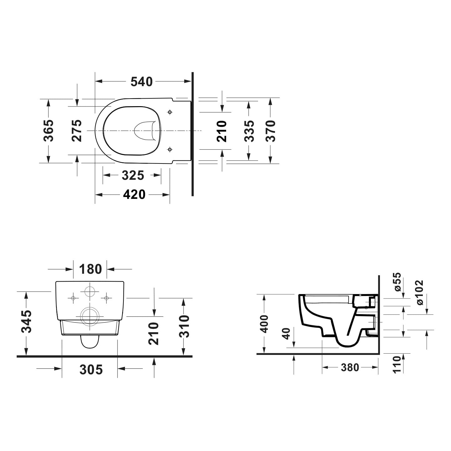 Duravit Balcoon Wand-WC 54 cm verd. Befestigung