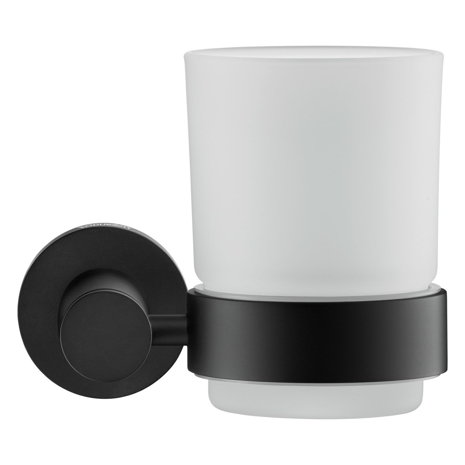 tesa MOON BLACK Zahnputzbecher mit Wandhalterung