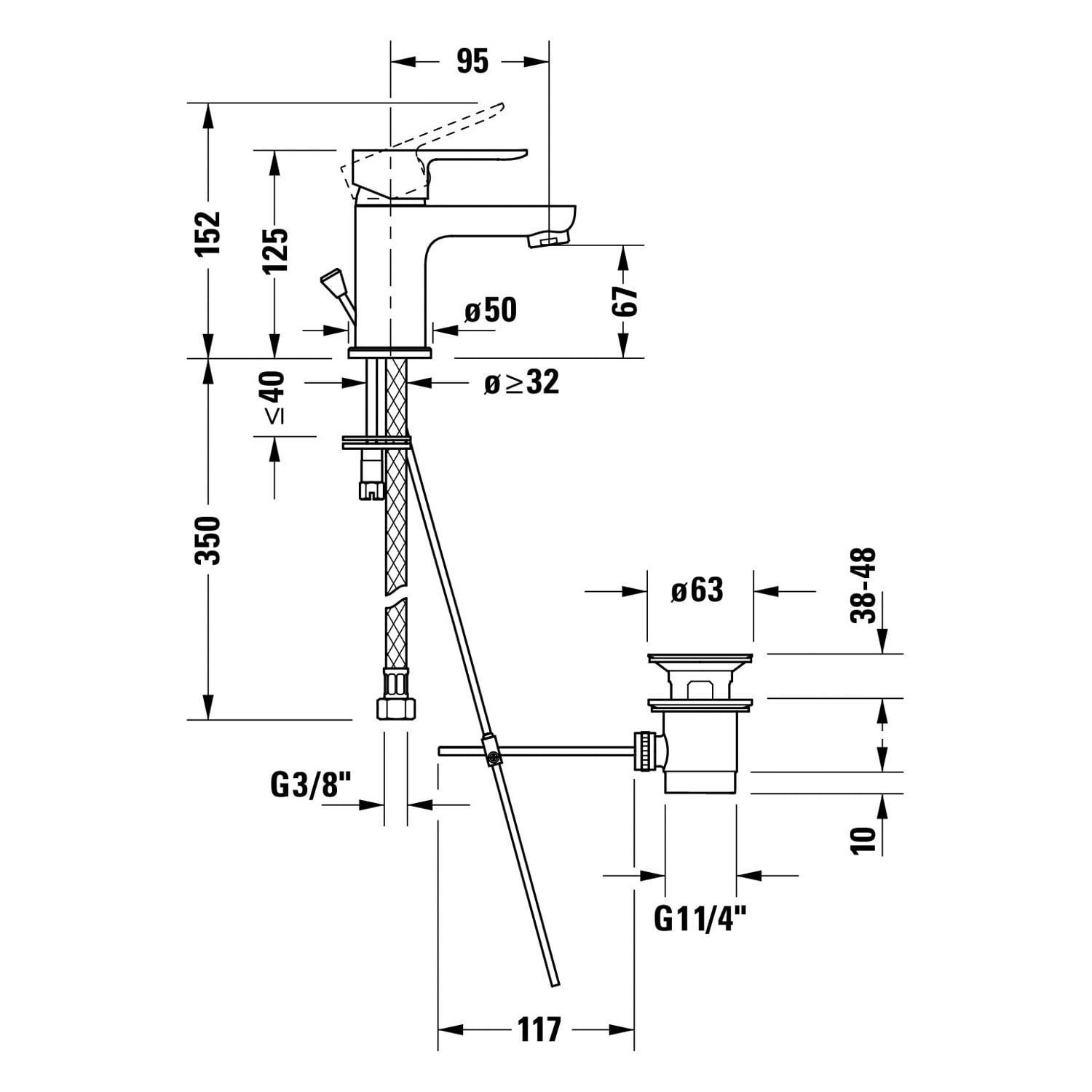 - einfache Installation: Armatur wird über flexible Anschlussschläuche 3/8" mit vorhandenen Wasseranschlüssen verbunden