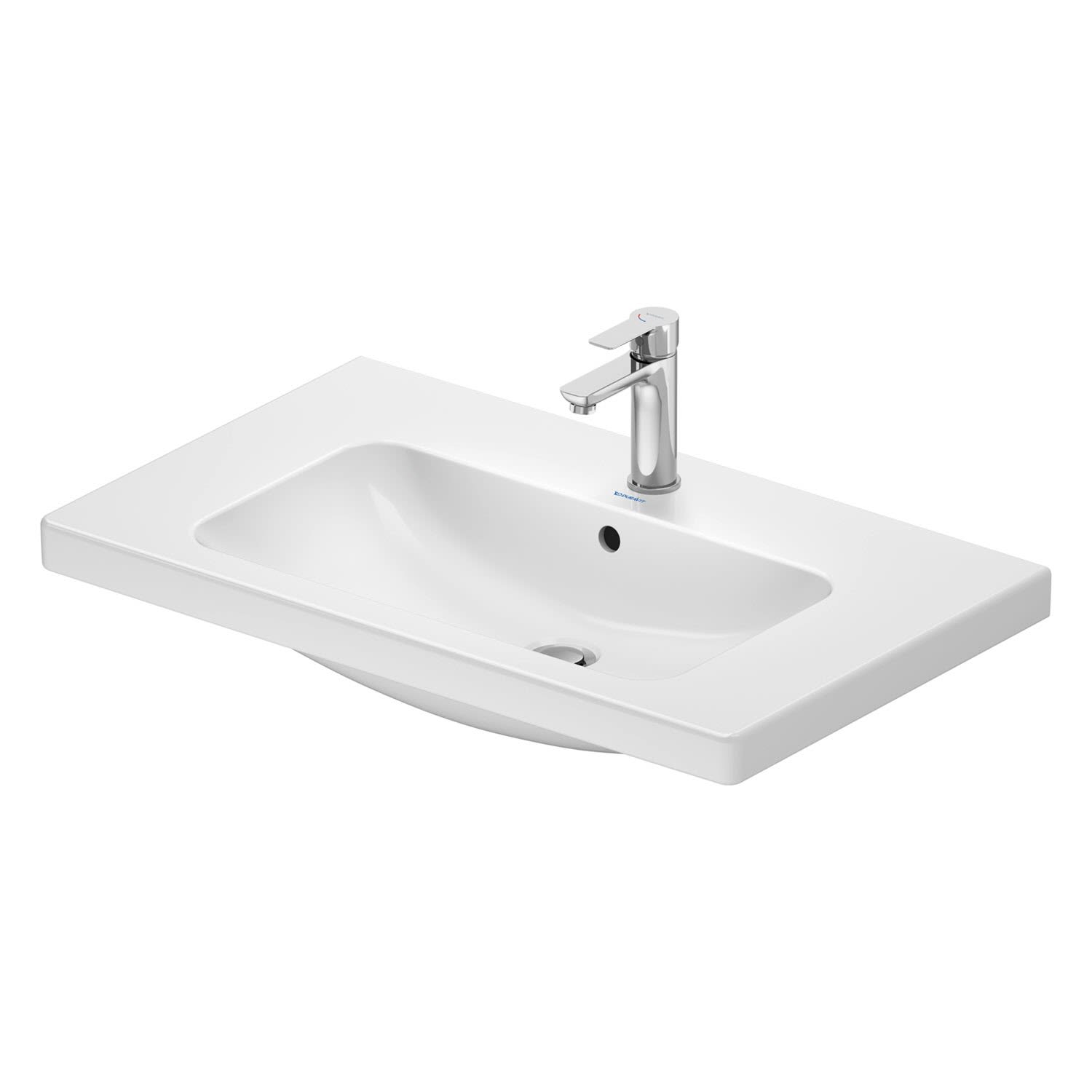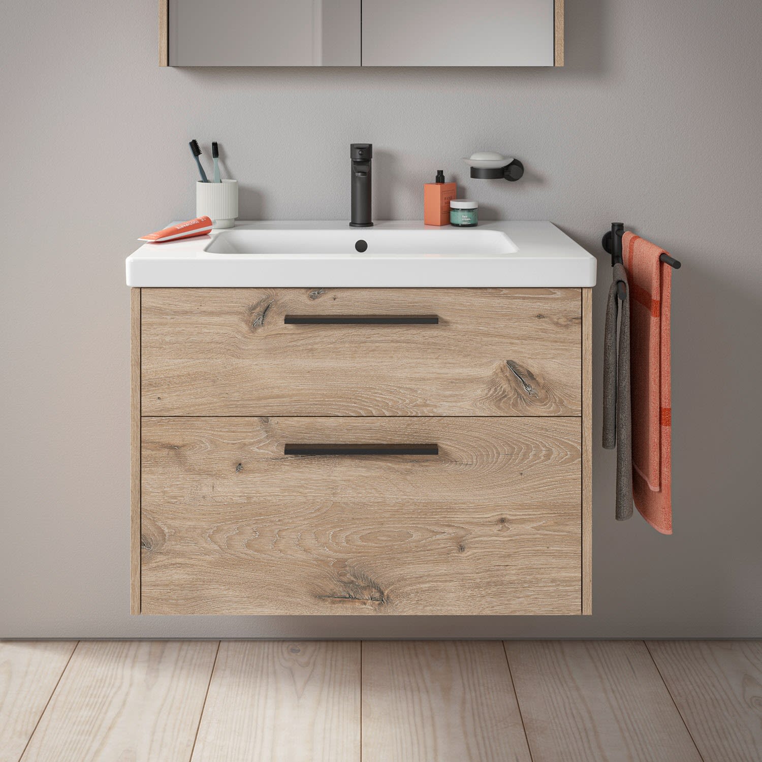Duravit D-Code Waschtischunterschrank 80 cm mit Keramikwaschtisch, mit 2 Auszügen, Griff schwarz