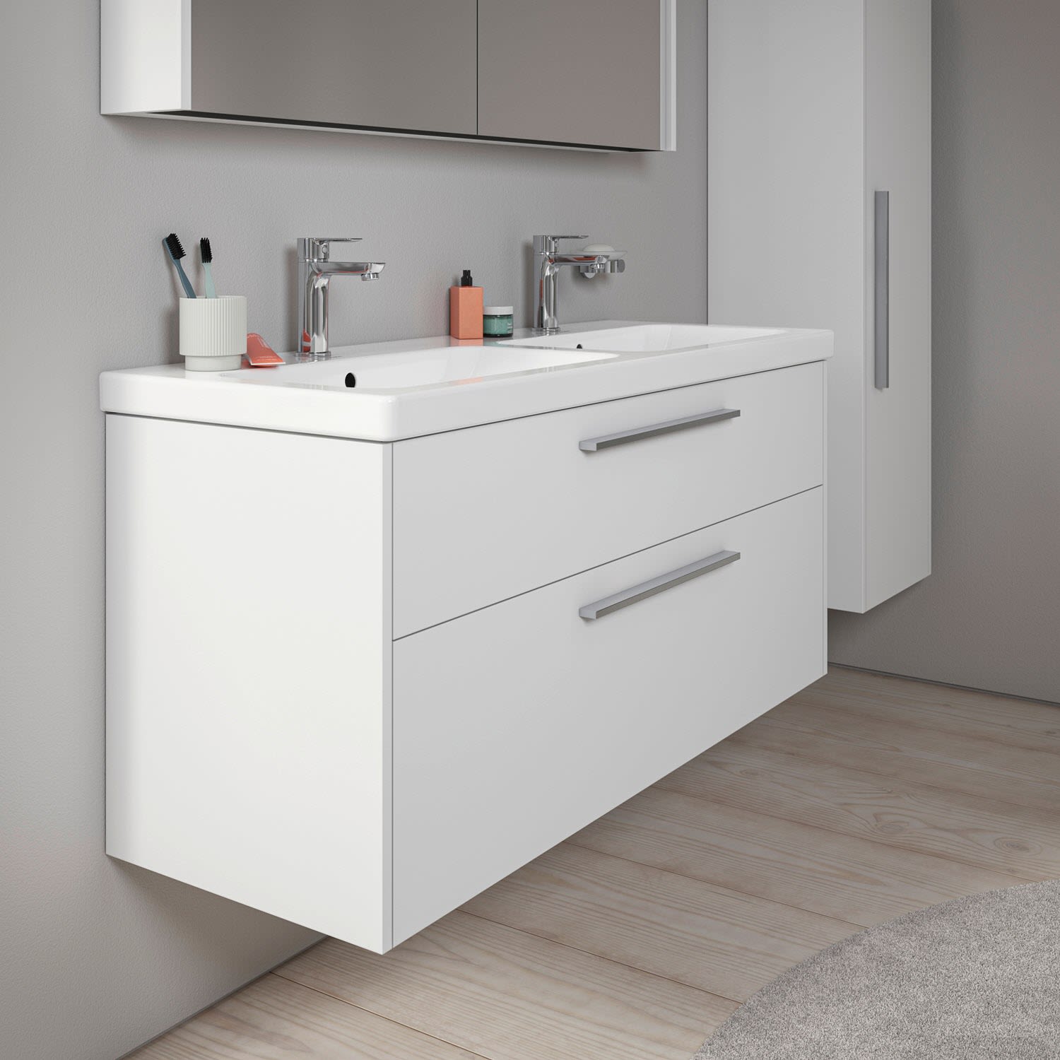 burgbad Eqio Waschtischkombination mit Keramik-Doppelwaschtisch mit LED-Beleuchtung, 123 cm, mit Stangengriff P95