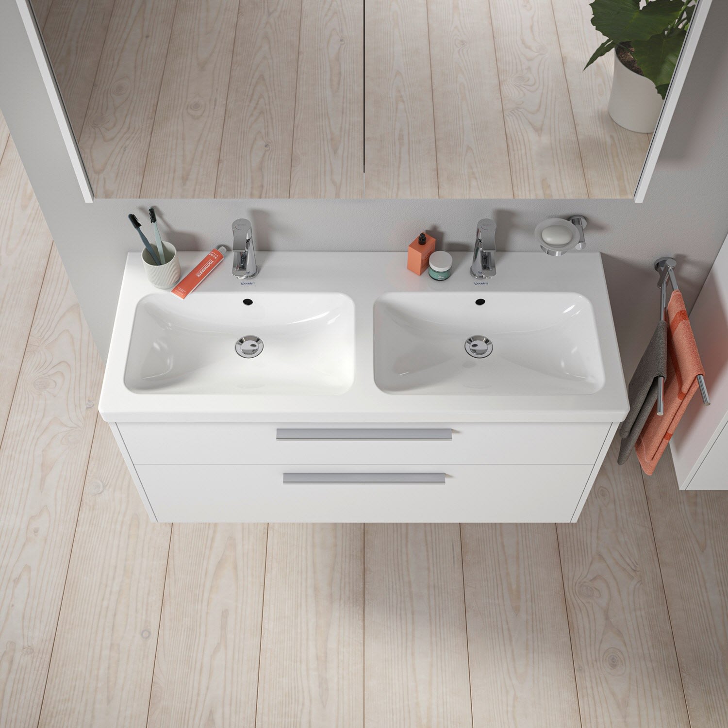 burgbad Fiumo Mineralguss-Waschtisch mit Unterschrank 122 cm, mit 2 Hahnlöcher, mit Griff G0223