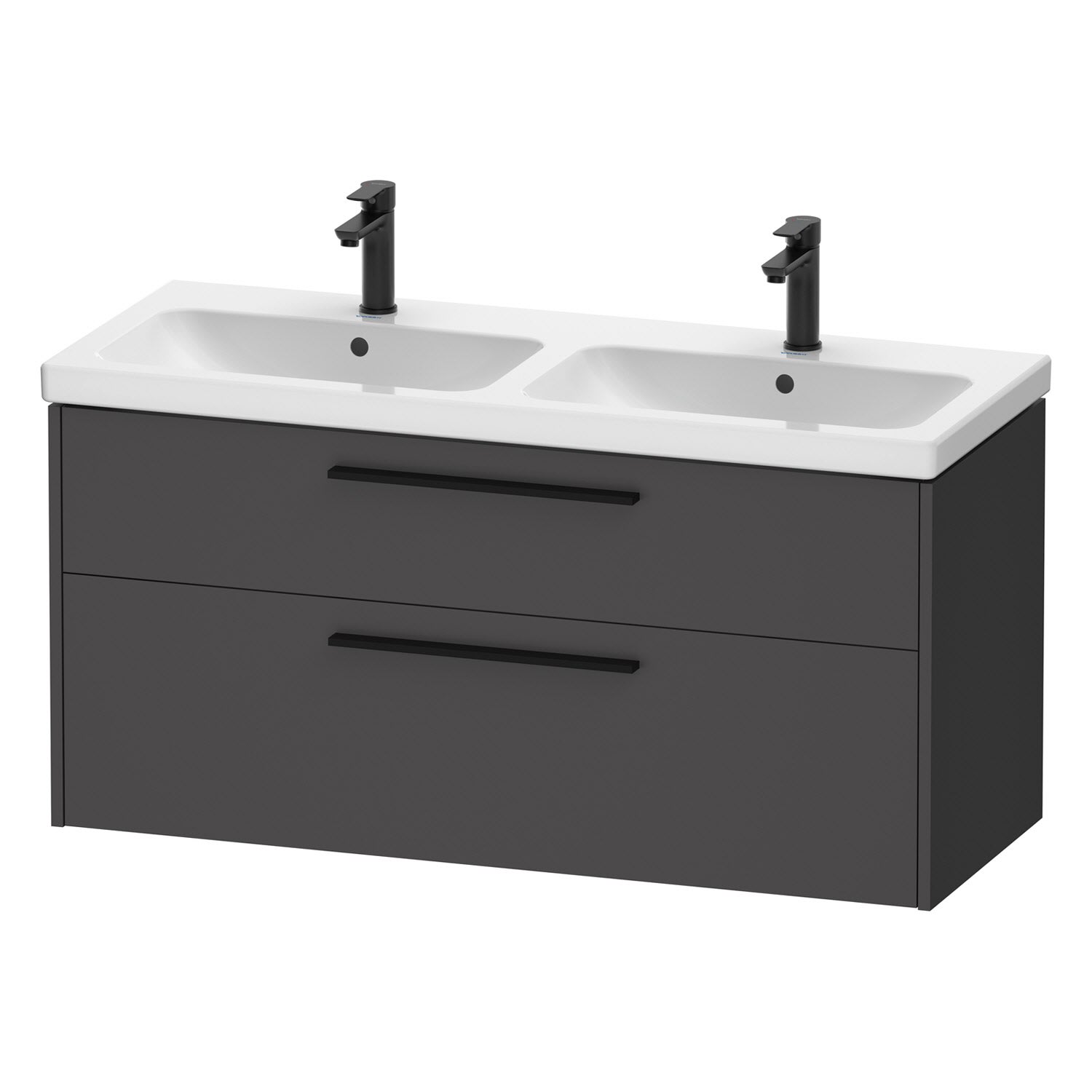 Duravit D-Code Waschtischunterschrank 120 cm mit Keramik-Doppelwaschtisch, mit 2 Auszügen, Griff schwarz